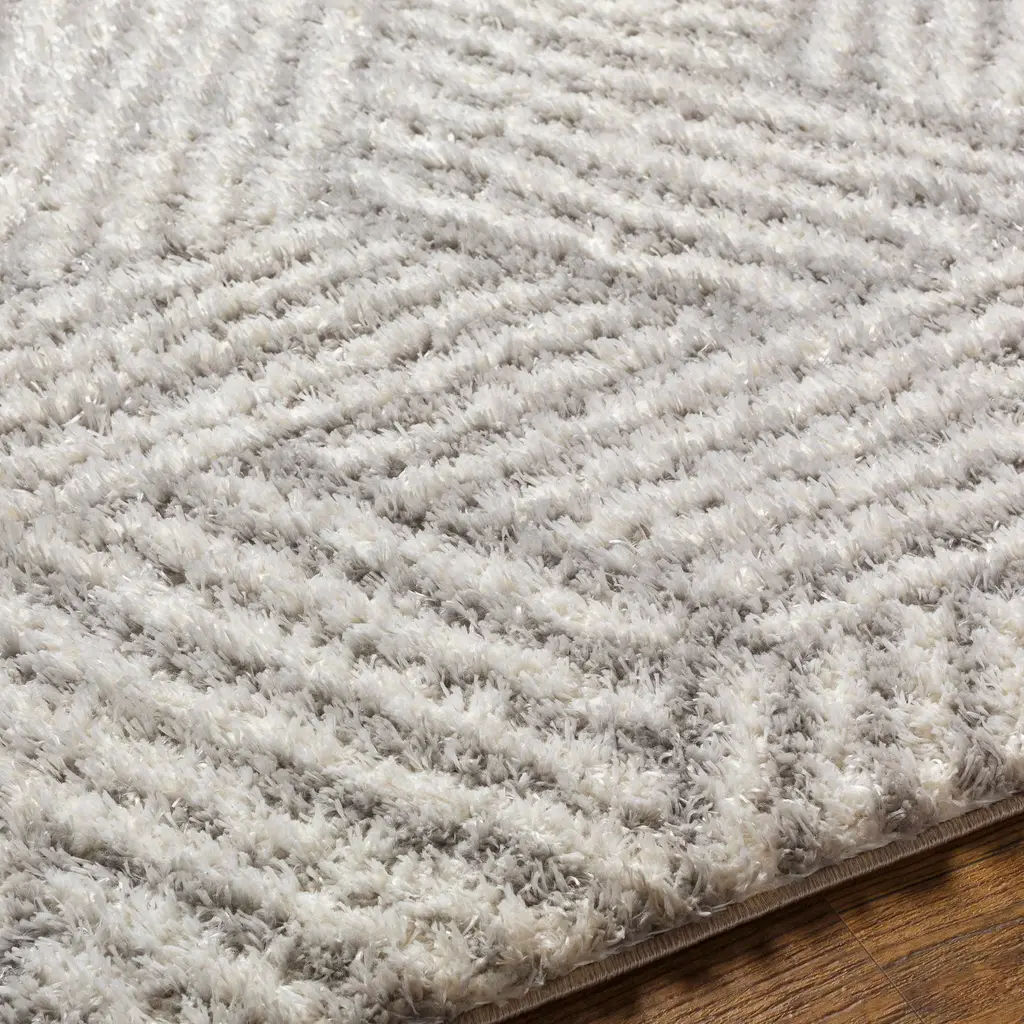 Collection: Mura Colors: Gray, OffWhite Construction: Machine Woven Material: 100% Polyester Pile: Plush Pile Pile Height: 1.18" Styles: Contemporary Made In: Turkey Thickness: 1.22" Price Range: $$$$$ (Most Affordable)