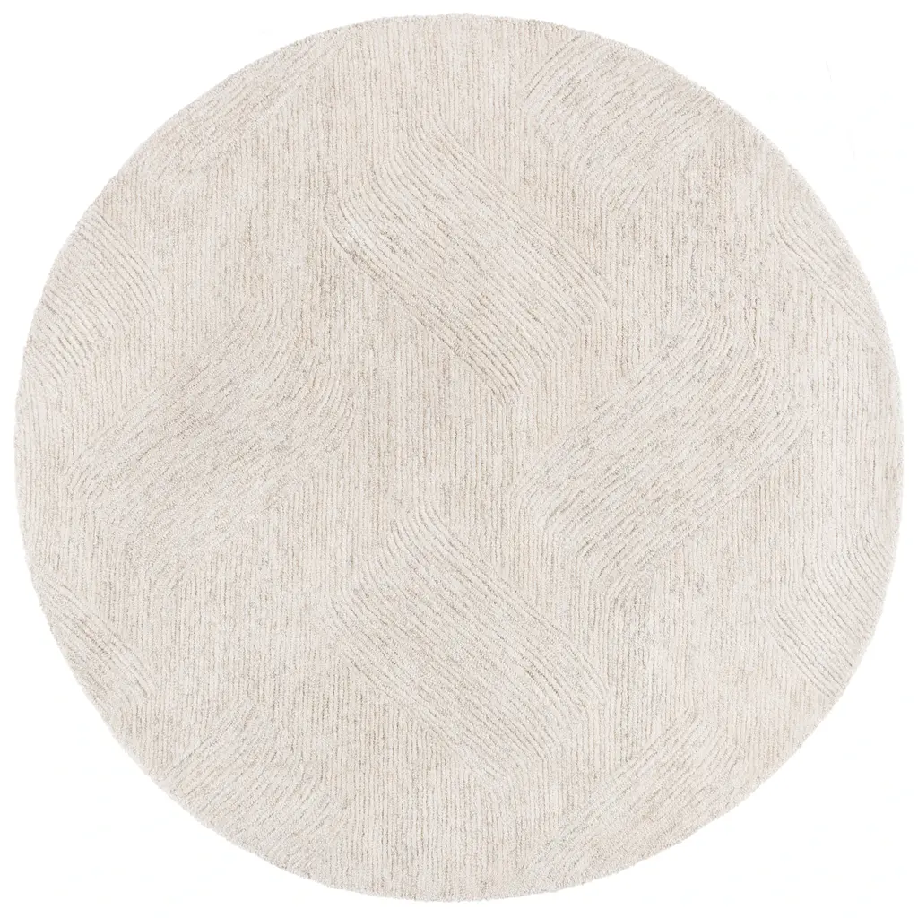 The invisible ridges traced by whirlwinds are actualized in this stunning round rug, a one-off piece deftly tufted by hand combining wool and cotton. Its characteristic raised texture has an impact on both the touch and eye, making this design also an unmissable decorative piece. Please inquire for detailed care instructions and tailor-made options.