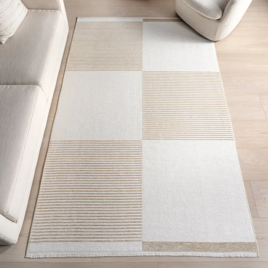 Murphy Large Checkerboard Reversible Washable Rug | Taupe - 5' X 8'