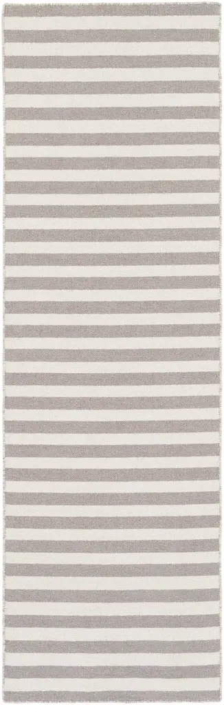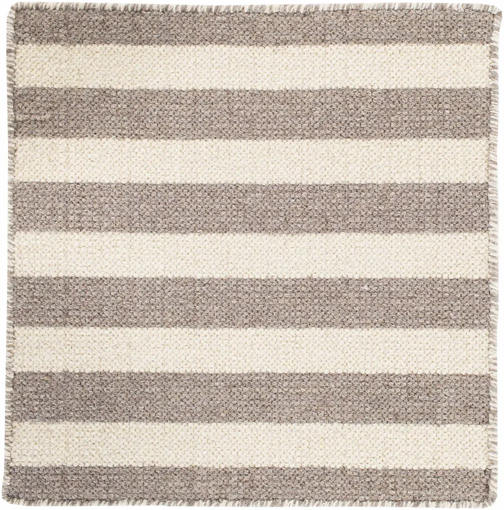Collection: Muscatatuck Colors: Ivory, Gray Construction: Hand Woven Material: 100% Wool Pile: No Pile Styles: Solid & Striped Made In: India Thickness: 0.28" Price Range: $$$$$ (Affordable)