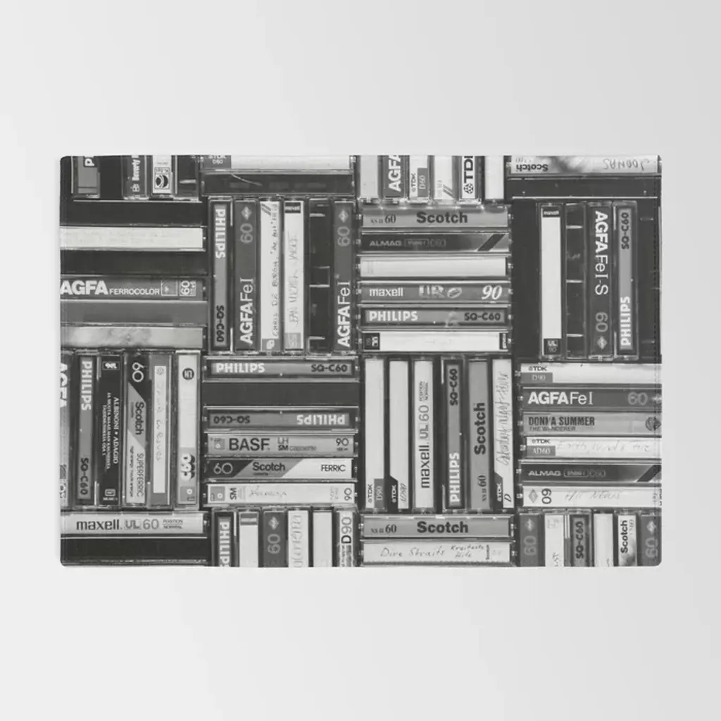 Music Cassette Stacks - Black And White - Something Nostalgic Iv #Decor #Society6 #Buyart Rug