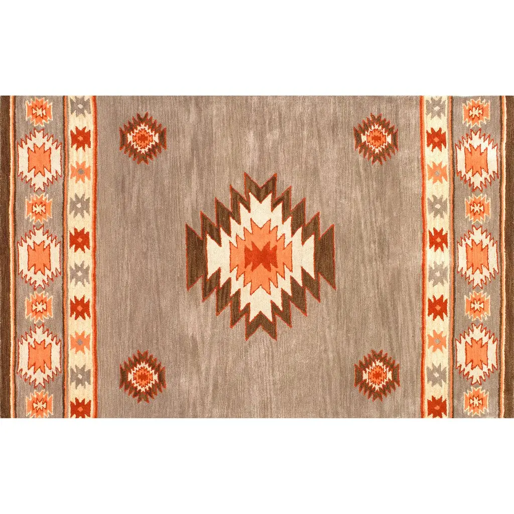 Dress up your wooden floors with this Southwestern rug. Handcrafted of 100% wool, the warm, muted colors of this style are well suited for modern and country decor enthusiasts alike. Play up the rustic element with plenty of plants, a faux elk head, and bovine art pieces.