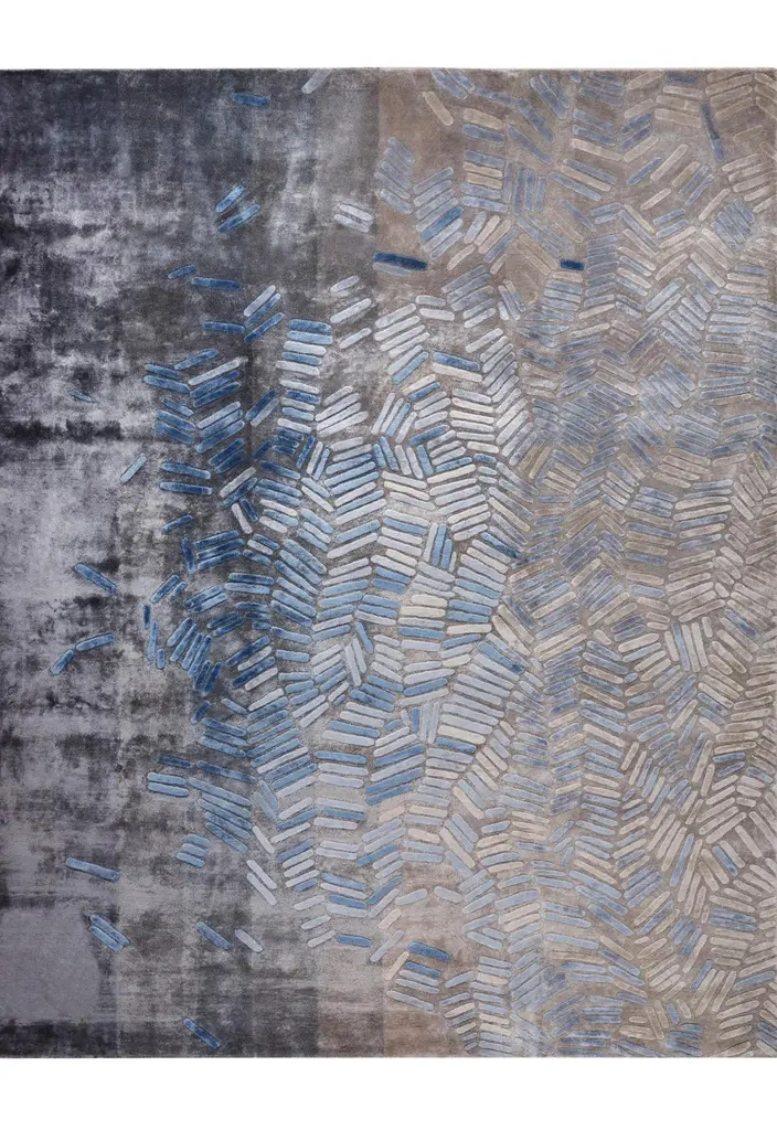 Light. One of the first sensations we experience at the time of birth. One of the last that we leave the world with. Everything in between is an act of dispersion. In it lies all of our life story – our affinities, our achievements, our relationships, our legacy.To light we belong.Hands Disperse collection is all about Contemporary, woven sensations, capturing the beauty, the mystery, the nature of light. Spanning ten distinct carpet designs, each in two colourways. Exquisitely hand knotted in botanical silk. Carpets of extraordinary shine and lustre, crafted for intimate moments of revelation, in form, detail, and temperament. Disperse. For light attracts light.From a concentration of stacked bars, which could well be visually interpreted as books, to a few breaking away from the pattern, Myriad captures the phenomenon of the dispersion of knowledge that illuminates the world with the light of understanding.Available in Colors Gold and Blue in different sizes : 170 x 245 cm - $4,407180 x 275 cm - $5,410245 x 305 cm - $8,014275 x 365 cm - $10,819305 x 425 cm - $14,024365 x 460 cm - $18,031