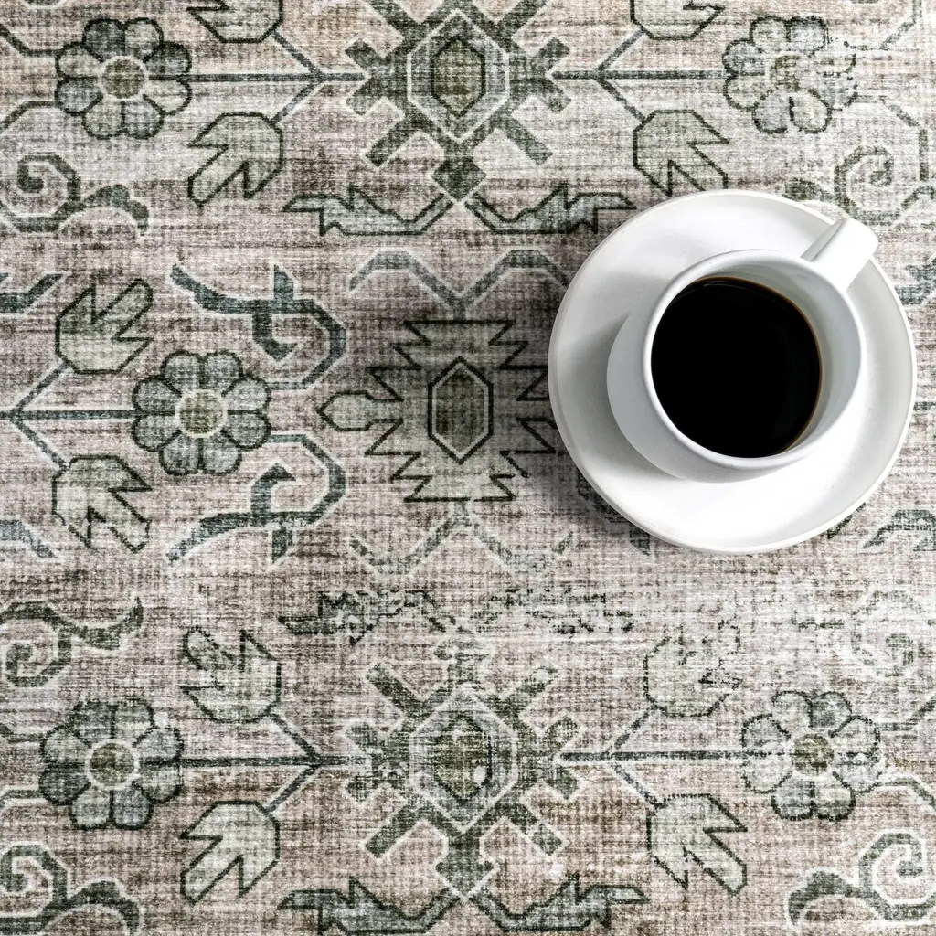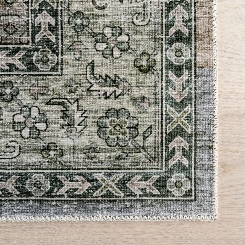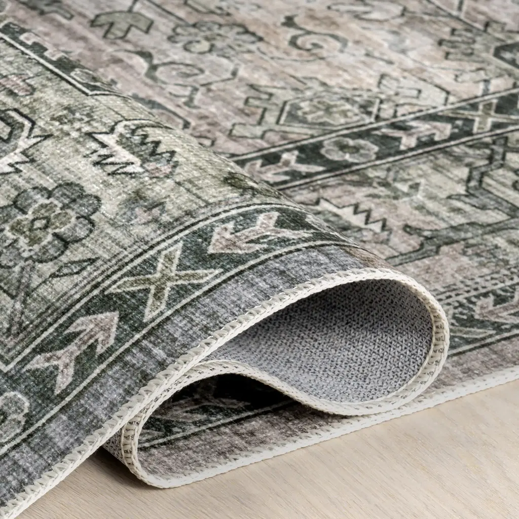Myrtle Spill Proof Washable Vintage Rug | Sage Green - 6' X 9'