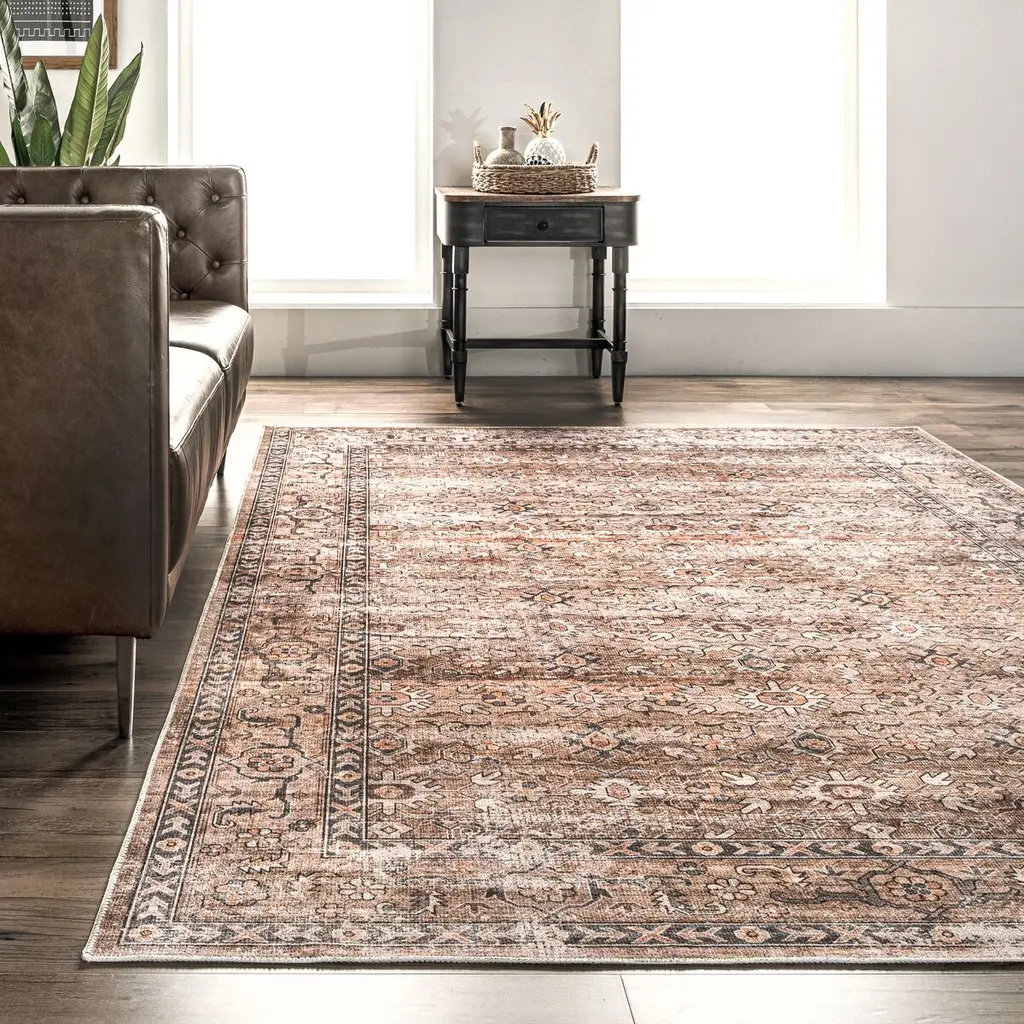You'd never guess that this rug is machine washable ( nor will your guests). The intentional abrash—the color variations that occur to high-quality floor coverings over time—adds to the stateliness of the Persian-influenced design. A rug pad is recommended to help prevent slipping.