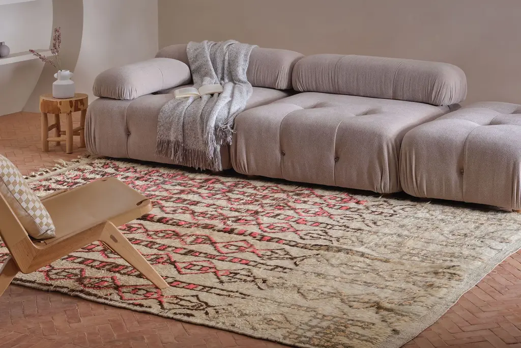 Our Moroccan pieces are each one-of-a-kind. Much of our collection was woven between 30 and 100 years ago, and curated by us. Other rugs in our collection are fresh off the loom and made with traditional techniques. Moroccan rugs don’t come with a key. As with any painting or poem, their motifs have many subjective interpretations. Originally made for personal use, these rugs took months to weave, documenting a shifting tide of events and emotions in the weaver’s life.