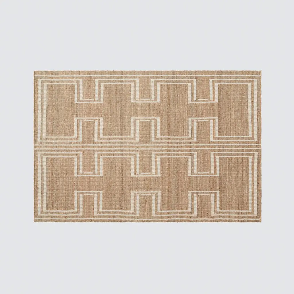 A natural jute area rug, reimagined with geometric ecru pattern. With a blend of jute, wool, and cotton, this minimal rug adds a warm touch with subtle, organic textures. Classic, durable, and effortlessly stylish, it’s a perfect addition to any space.Handwoven by a collective of 200 weavers in Panipat, one of India’s historic hubs for rug making, each one takes days to complete. Every rug is Oeko-Tex® certified and made sustainably in a fair trade environment.We recommend using a RUG PAD to prevent wrinkles and slippage.This beauty is also available as a runner.Unsure of what size rug you need? Visit our rug size and style guide for more information.NOTE: Due to the size of this item, returns for a refund require a $65 total fee. Returns for store credit are always free.