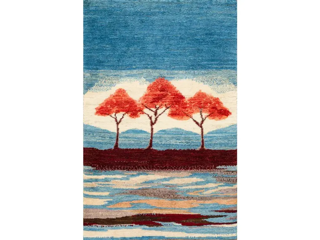 Naïve Blooming Trees on Stripes 1 is a rectangular wool rug.Zollanvari Super Fine Gabbeh.Trees, flowers and animals (principally lions) are design themes that are used by tribal women to weave some of Zollanvari’s most original Gabbehs. The weavers are given patterns and colour ranges (often inspired by ancient and archaic patterns such as the ‘Tree of Life’) but have a free hand in producing these works of woven art using their imaginations and the traditional design vocabulary passed down through each new generation of weavers. This makes each Gabbeh unique and individual. Flora & Fauna design Gabbehs are also available in Zollanvari Super Fine (Kashkuli, Luribaft and Bulurbaft) and Zollanvari Fine qualities.The designs are available in custom and bespoke sizes and colours.