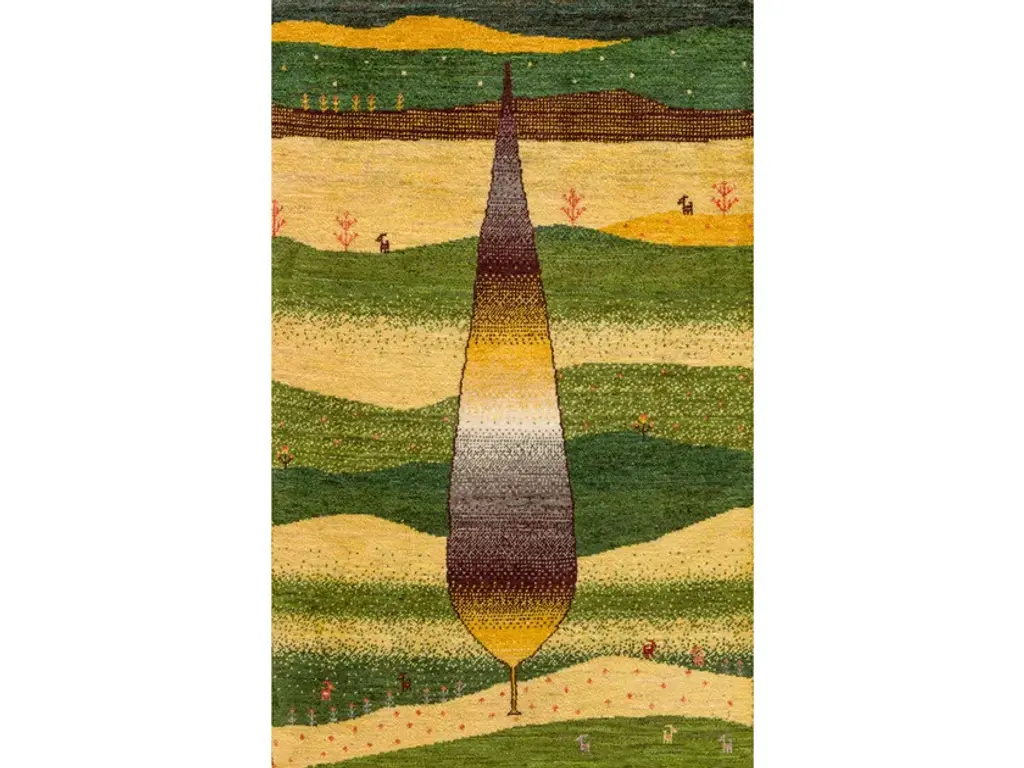 Naïve Cypress Tree of Life 5 is a rectangular wool rug.Zollanvari Super Fine Gabbeh.Trees, flowers and animals (principally lions) are design themes that are used by tribal women to weave some of Zollanvari’s most original Gabbehs. The weavers are given patterns and colour ranges (often inspired by ancient and archaic patterns such as the ‘Tree of Life’) but have a free hand in producing these works of woven art using their imaginations and the traditional design vocabulary passed down through each new generation of weavers. This makes each Gabbeh unique and individual. Flora & Fauna design Gabbehs are also available in Zollanvari Super Fine (Kashkuli, Luribaft and Bulurbaft) and Zollanvari Fine qualities.The designs are available in custom and bespoke sizes and colours.