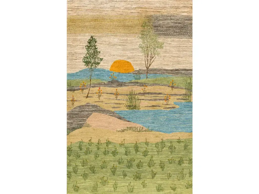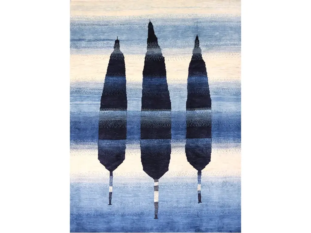Naïve Landscapes of my Fatherland 10 is a rectangular wool rug.Zollanvari Super Fine Gabbeh.The Landscape collection is an integral part of the Zollanvari Gabbeh range. The majority are in Zollanvari Super Fine quality, woven by Ghashgha’i nomads from the Fars Province, who are renowned for extremely fine carpets such as Kashkuli Bibibaff and Wasir Machsus. With this in mind we turned to them for the extremely demanding production of our modern Zollanvari Super Fine Gabbehs. The designs and symbols used are rooted in the old Gabbeh design canon that Zollanvari have reinterpreted with a modern twist and to suit modern interiors and sensibilities.