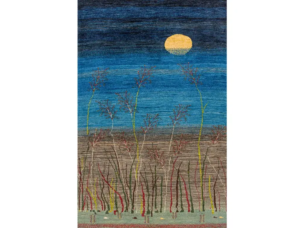 Naïve Landscapes of my Fatherland 27 is a rectangular wool rug.Zollanvari Super Fine Gabbeh.The Landscape collection is an integral part of the Zollanvari Gabbeh range. The majority are in Zollanvari Super Fine quality, woven by Ghashgha’i nomads from the Fars Province, who are renowned for extremely fine carpets such as Kashkuli Bibibaff and Wasir Machsus. With this in mind we turned to them for the extremely demanding production of our modern Zollanvari Super Fine Gabbehs. The designs and symbols used are rooted in the old Gabbeh design canon that Zollanvari have reinterpreted with a modern twist and to suit modern interiors and sensibilities.