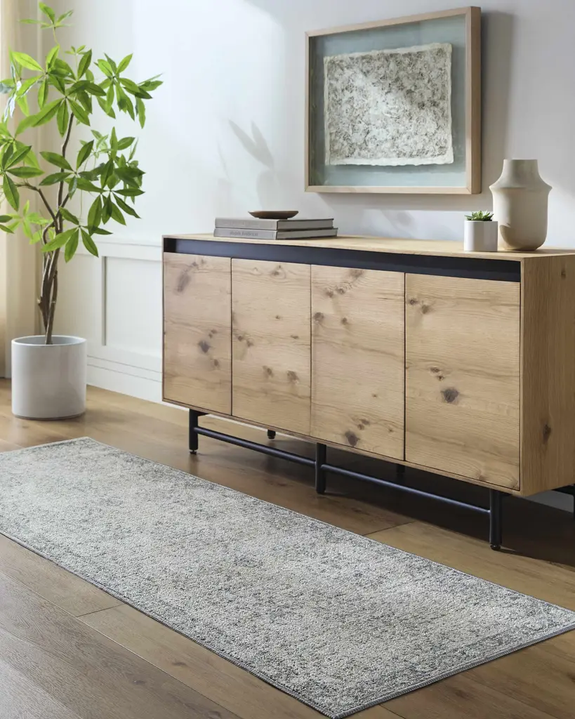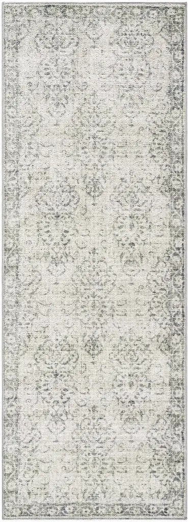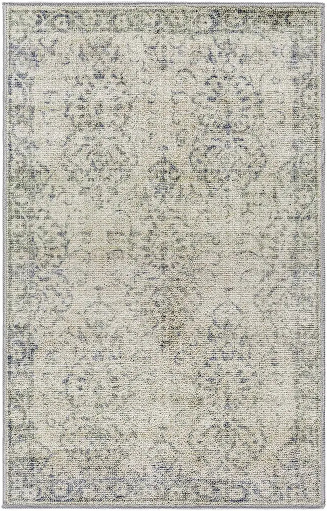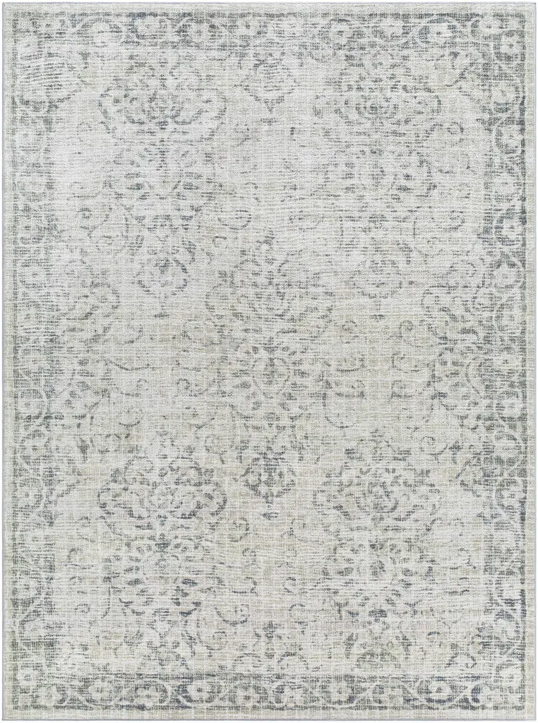 Collection: Najib Colors: Light Gray Construction: Machine Woven Material: 100% Polyester Pile: Medium Pile Pile Height: 0.31" Styles: Traditional Backing: Rubber Machine Washable: Yes Made In: Turkey Thickness: 0.39" Price Range: $$$$$ (Most Affordable)