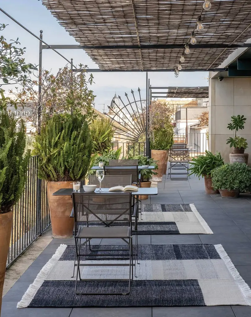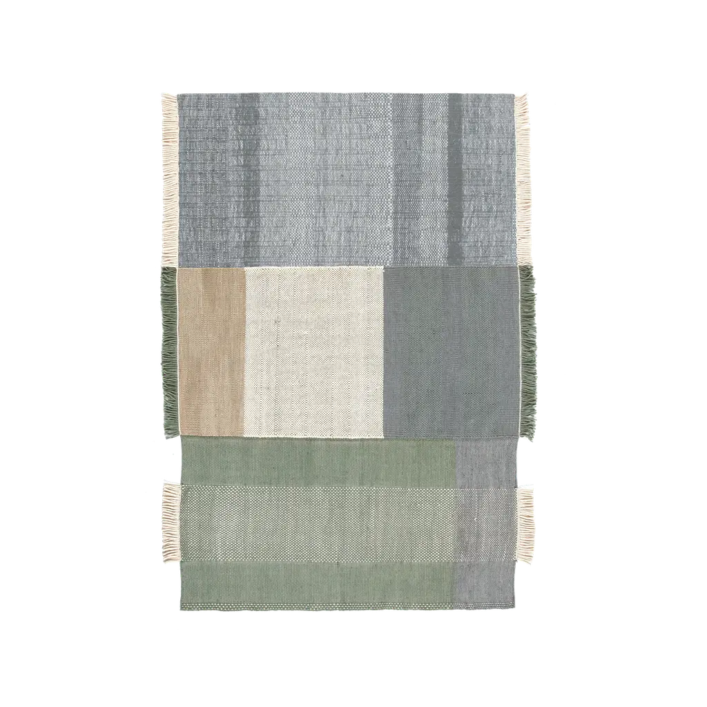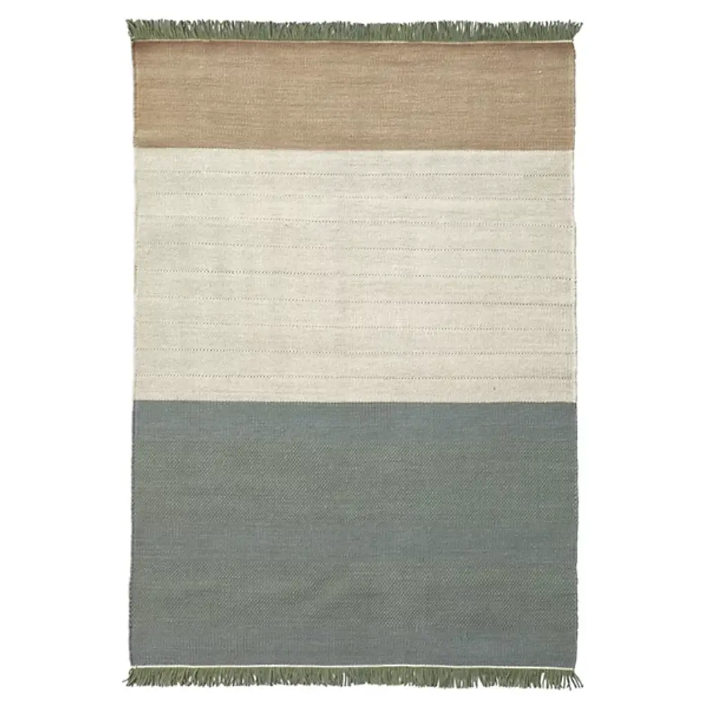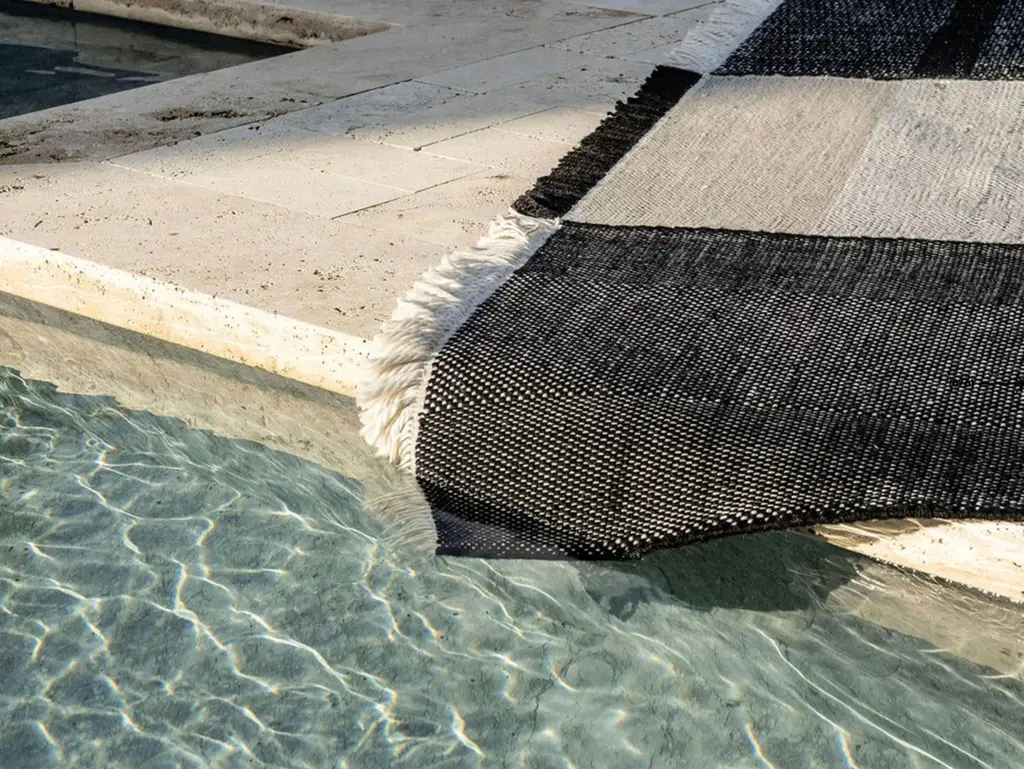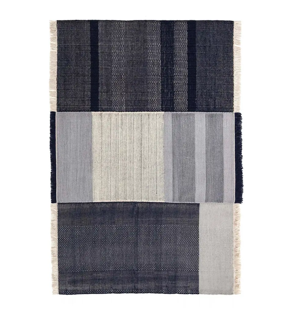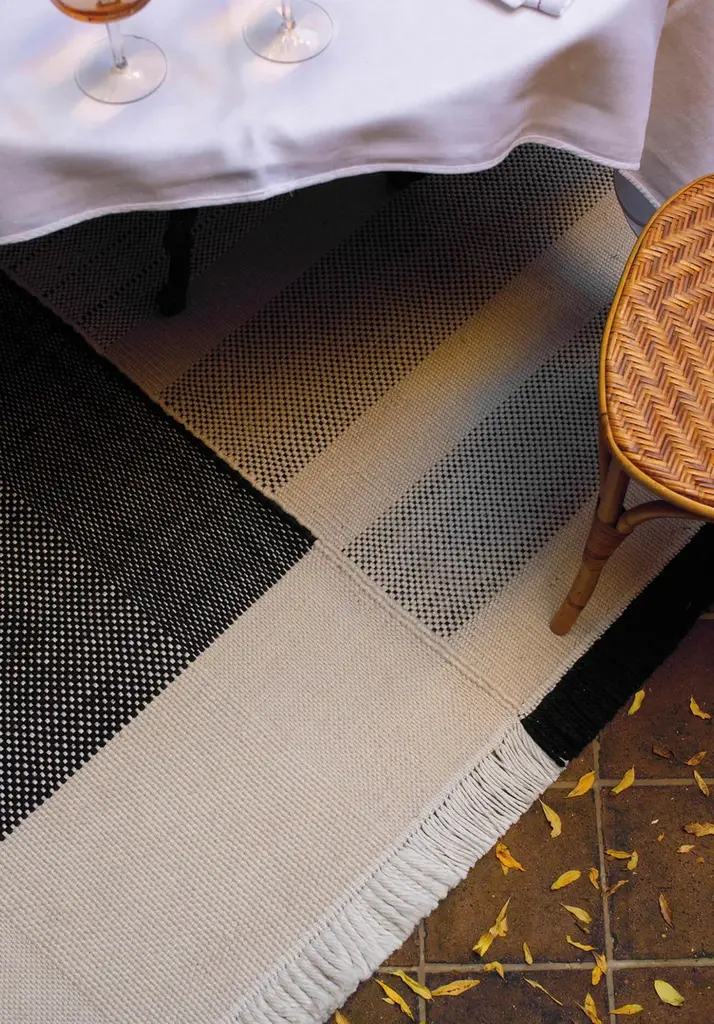 Nani Marquina & Elisa Padrón 'Tres' Outdoor Rug 300x400cm, Current production, Spain. Tres Outdoor aims to transfer the warmth of the iconic Tres collection to the outdoor world. Made from 100% recycled PET, a material produced through the process of recovery and reuse of plastic bottles, this indoor-looking rug is resistant to water and adverse weather conditions.Tres Outdoor Azul combines white and blue in various shades and textures. Tres outdoor is part of the outdoor line rugs specially designed to offer comfort for outdoor spaces.The collection arises from the desire to transfer the warmth of interior spaces to the outside world. Areas where the common denominator is the absence of walls and delineated spots, in which the rug becomes the perfect resource to define and create comfortable outdoor environments.Within the new nanimarquina outdoor concept, some of the brand’s most successful collections are represented such as Tres and Shade. A set of vibrant textures combined with different thicknesses and fibre blends, ensures an optimal aspect is maintained while bringing warmth to open-air environments. Fibers are replaced and homogenized by 100% recyclable PET creating a new version.Fiber:100% Recycled PETType:DhurrieTotal height:8 mmTechnique:Hand loomedDensity:56,600 yarns/m2.