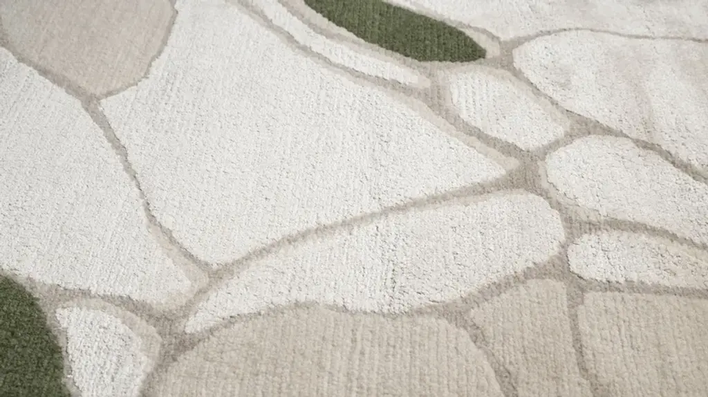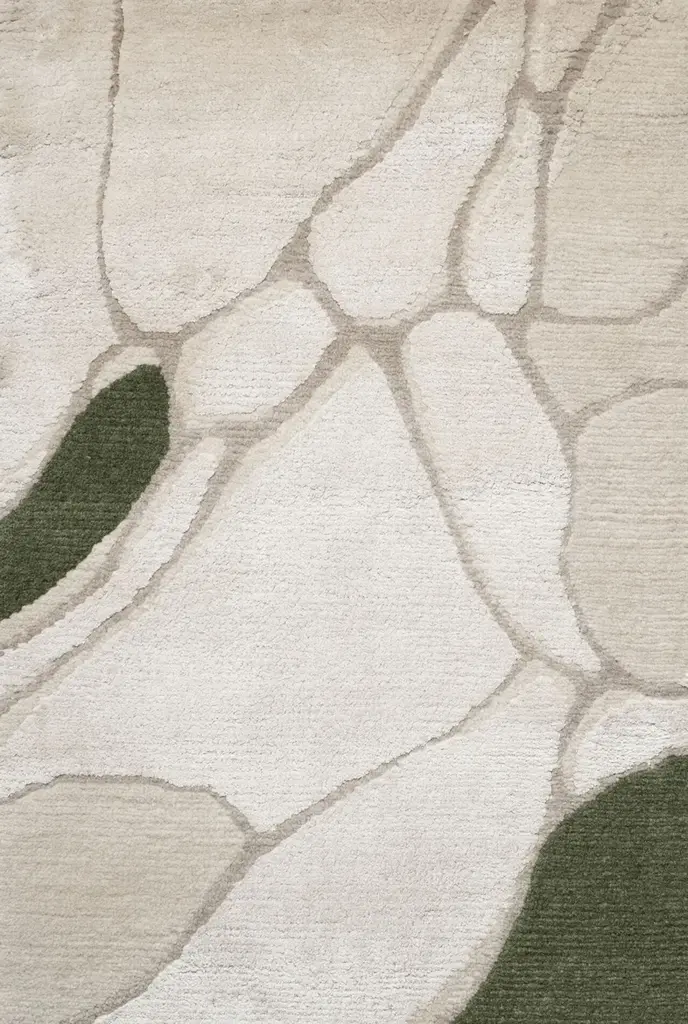 Material: Wool, Bamboo SilkKnot Density: 60 knots/inch²Pile Height: 4 - 6mmTechnique: Hand-knottedCustom sizes and colors on requestIn the Fabulous collection, mysterious plants are woven into magical hues; rays of light and other immaterial and atmospheric components are rendered by the richness of wool and silk threads in the weave of the rugs. The unique patterns of the rugs surprise with their sophistication and simplicity at the same time.Inspired by reflections of light, the hand-knotted Mirror rug contains 75 % wool and 25 % bamboo silk. The design details are shaped by a 80 knots/inch² knot density and a 4 to 5 mm pile height.