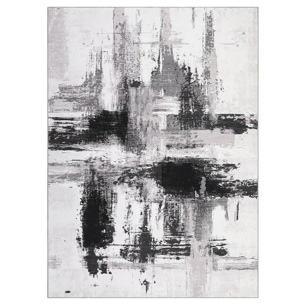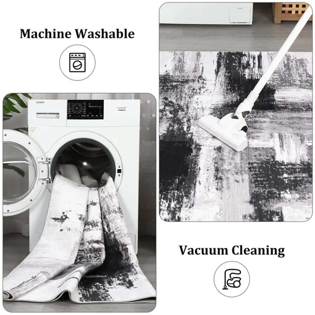 Nasitip 5X7ft Abstract Area Rug, Machine Washable Non-slip Accent Carpet, Soft Low-pile Floor Carpet Rug,black Gray