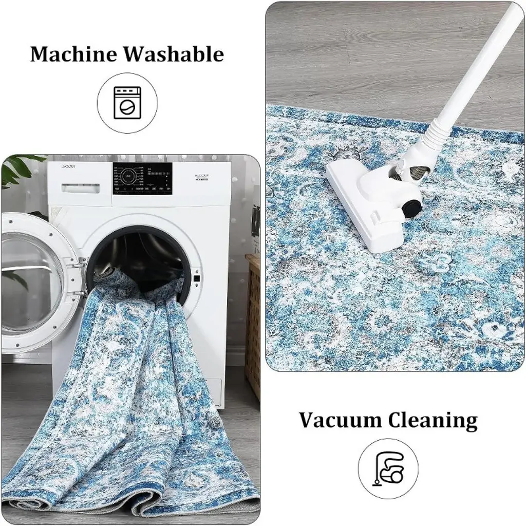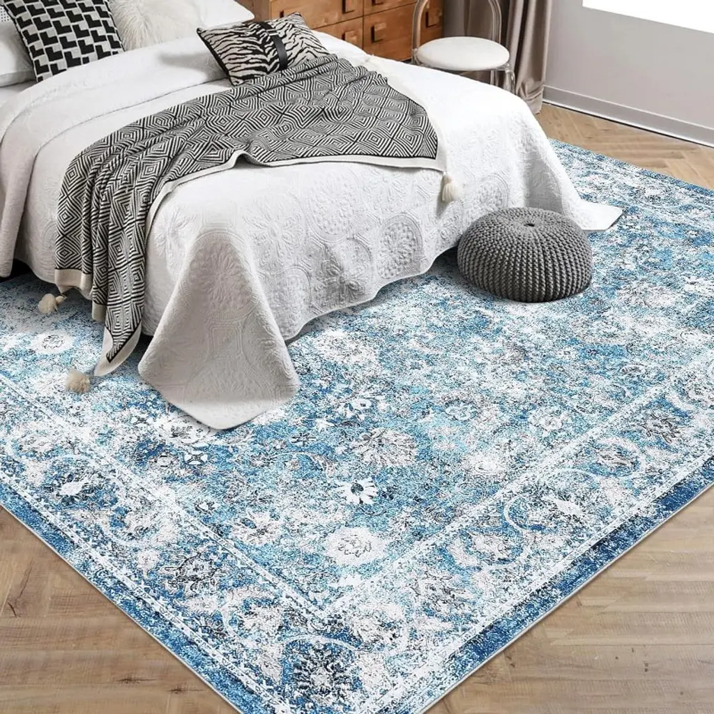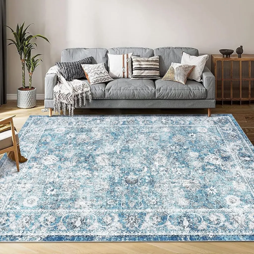Add a touch of elegance to any room with this vintage floral area rug, featuring a beautifully distressed design and soft, washable fabric. Perfect for high-traffic areas, it combines style and comfort while ensuring safety with its non-slip backing. Highlights at a glance:Timeless vintage floral design adds charm to any room.Soft, warm texture for a comfortable underfoot experience.Machine washable and stain-resistant for easy maintenance.Non-slip backing ensures safety on all floor types.Tightly machine woven construction and sturdy edges resist shedding.Low pile thickness ensures it won't obstruct doorways and easily fits under furniture. Specification:Size: 5x7 / 8x10 / 9x12 / 10x13 ftColor: camel / grey / blueMaterial: polyester fibre+textured TPRApplication: living room/bedroom/dining room/kids room/playroom/office/kitchen/farmhouse/floor Friendly note:Upon receiving the vintage floral area rug, please unfold it.Initial creases may appear, but don't worry; they will smooth out after a few days. Care instructions:Can be hand washed or machine washed in cold water.Use mild detergent.Support vacuum cleaner and robot vacuum. Packing list:Area rug x1