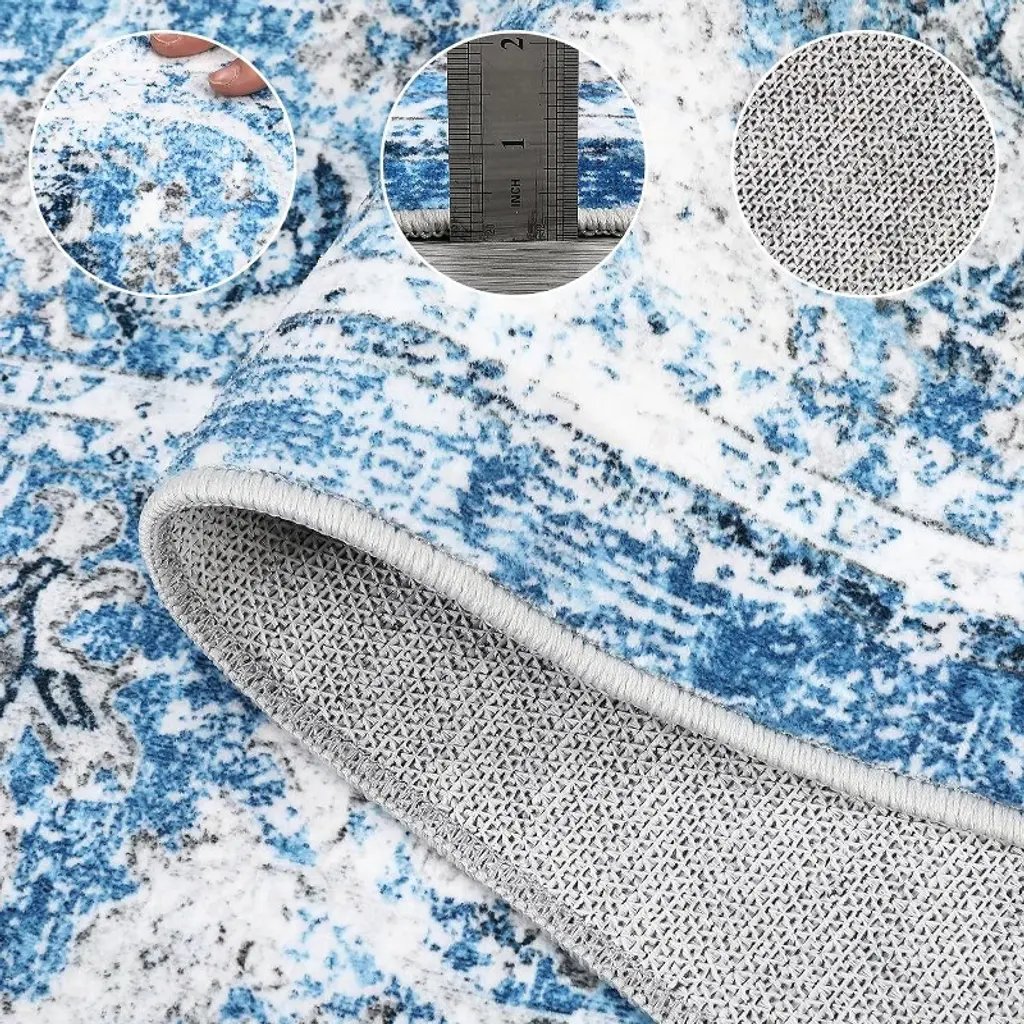 Nasitip 5X7ft Vintage Distressed Floral Area Rug Soft, Thin Floor Carpet Low Pile Non Shedding Rug,blue
