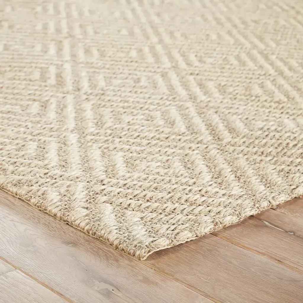 This sisal area rug boasts natural charm and effortless casual style. In a light gray hue, this natural accent's diamond lattice weave creates unique geometric dimension. Natural Construction: handwoven construction accentuates the natural fibersEco-Friendly Fibers: made of 100% jute to accentuate the natural styleNaturally Textured: the natural woven fibers create an organic aestheticCare and Cleaning: Blot stains and clean with mild soap and water. Use dryer or fan to speed up the drying process; avoid prolonged exposure to moisture. Vacuum without beater bar. Trim stray tufts with scissors.Rug Pad Recommended: extend the life of your rug with an open weave rubber rug pad Jaipur produces a extensive range of rugs, including flatweaves, naturals, transitional and modern collections. Design is a core passion for Jaipur and spills out in bold colors, distinctive styles, and fashion-forward trends.