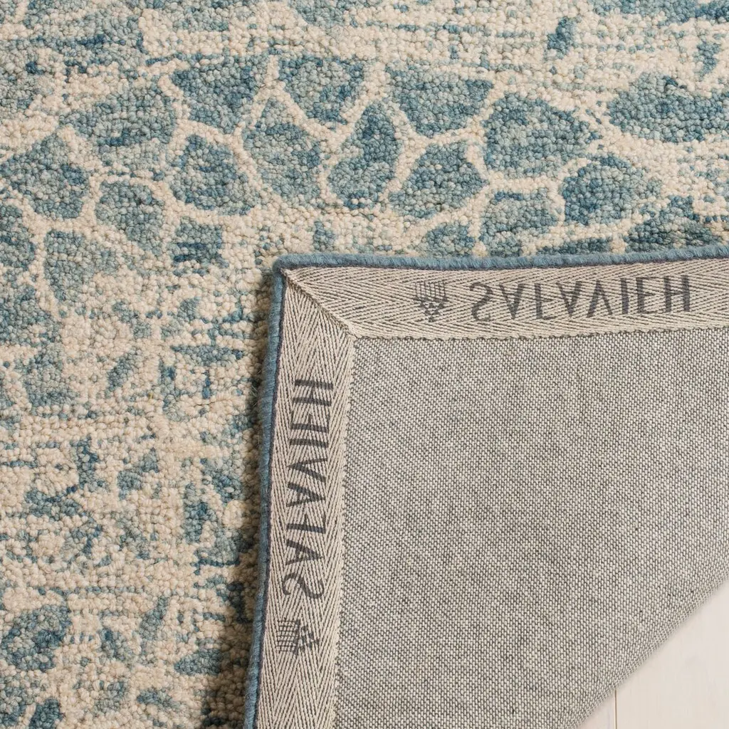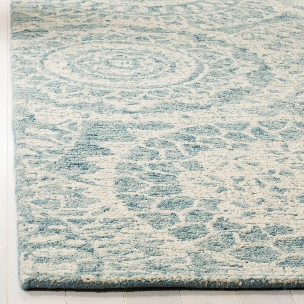 Transform your living space with our exquisite hand-tufted wool area rug, sized at a versatile 4' X 6'. Beautifully crafted in India, this small rectangular rug showcases a graceful ivory and blue color palette that exudes timeless elegance. The rug boasts a plush 1/2" pile height for added comfort underfoot. It features a captivating pattern inspired by traditional medallion motifs, adding a touch of sophistication to any room. Please note that this luxurious piece is not washable and is not slip resistant, making it an ideal choice for areas with low foot traffic. Add a touch of artisanal charm to your home with this stylish and durable woolen masterpiece.