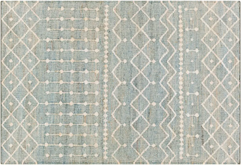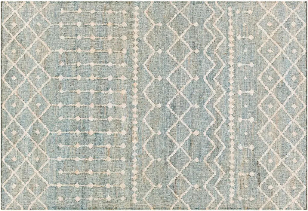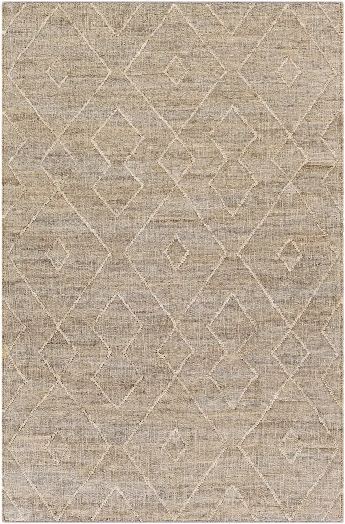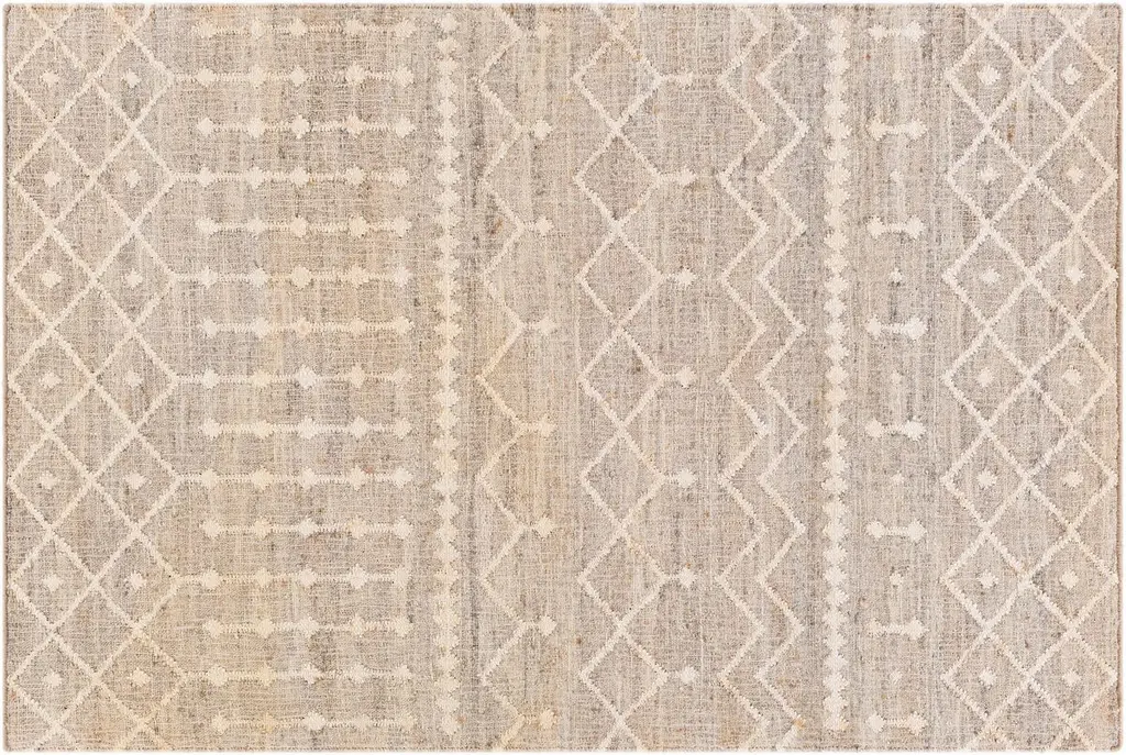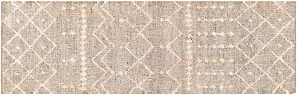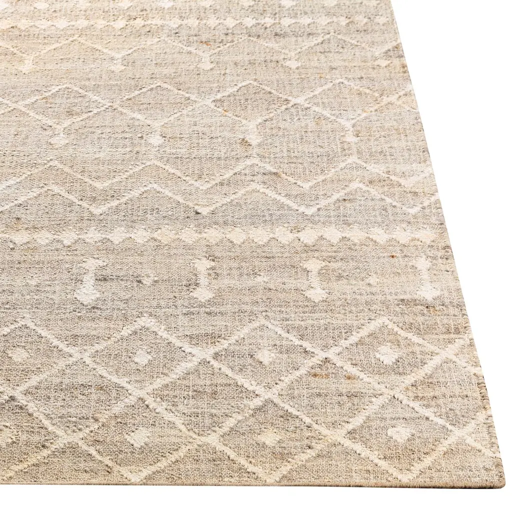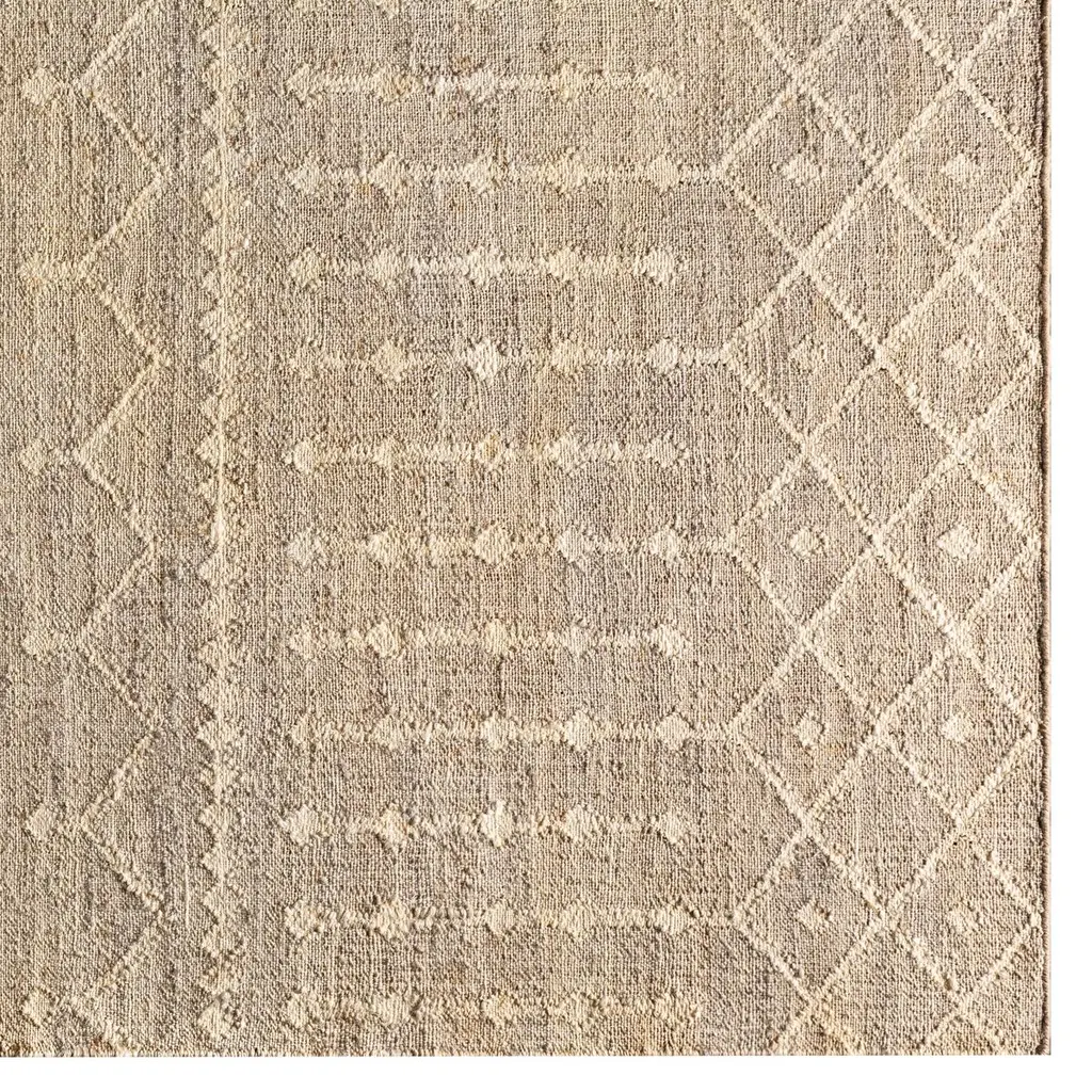 The pale geometric motifs call attention to the wonderful variety of tones in this rug's background. It's handwoven of jute, among the softest of the natural fibers used for rugs. A rug pad is recommended to prevent slipping and extend the life of the rug.