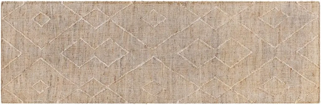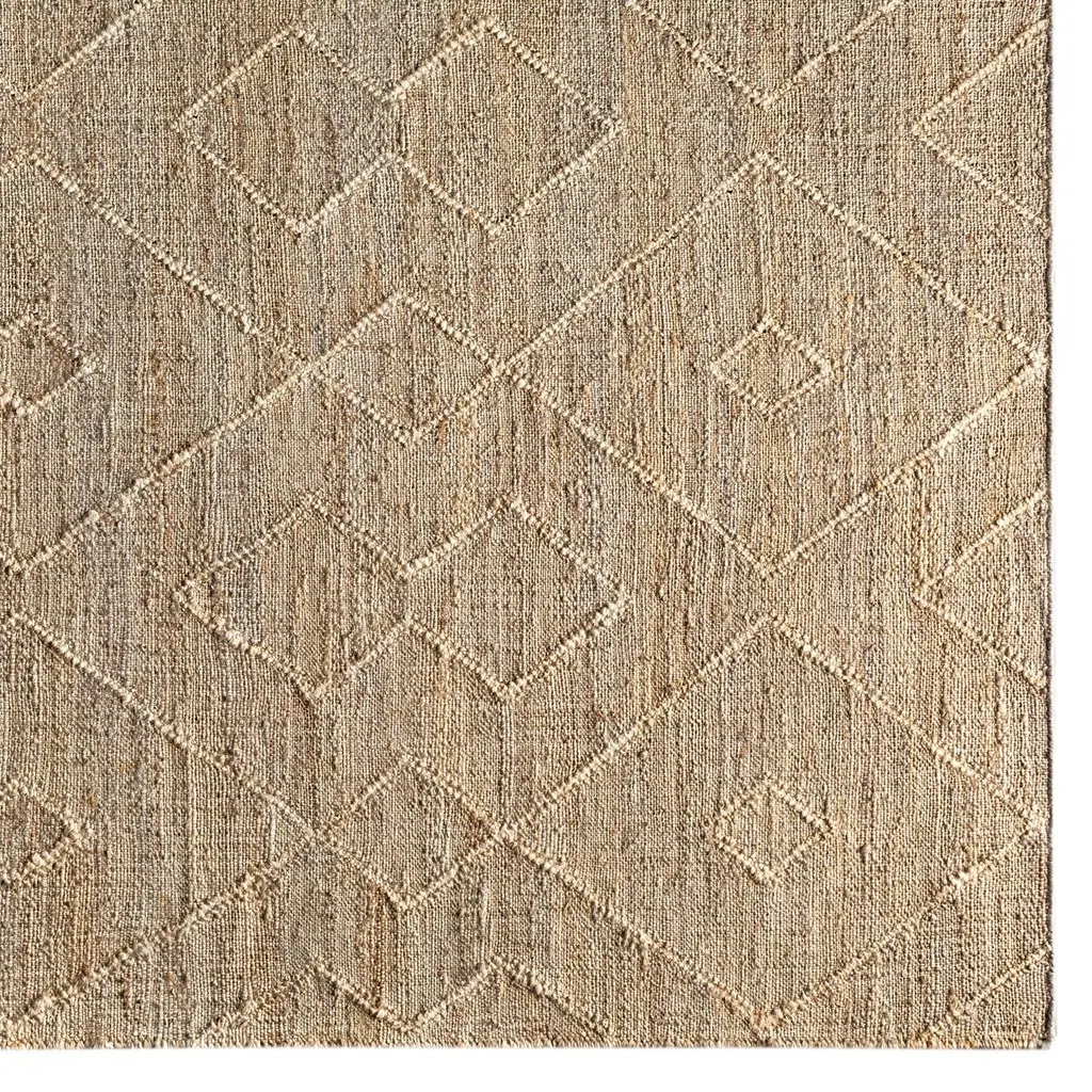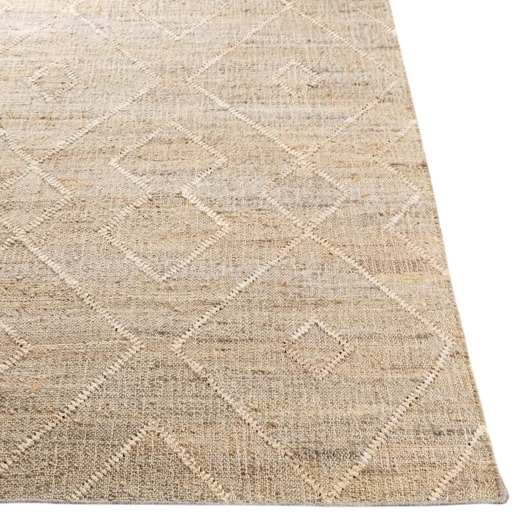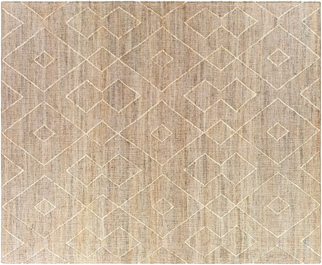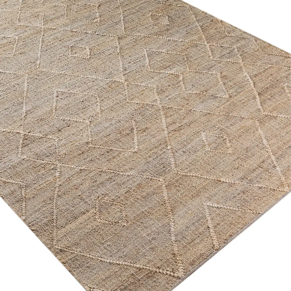 The pale geometric motifs call attention to the wonderful variety of tones in this rug's background. It's handwoven of jute, among the softest of the natural fibers used for rugs. A rug pad is recommended to prevent slipping and extend the life of the rug.