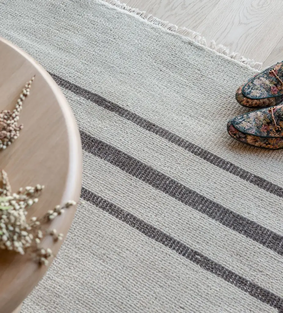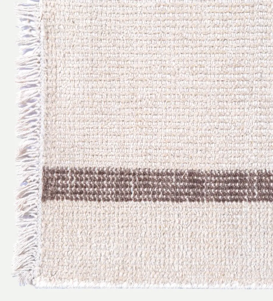 Introducing the Natalie Rug - the perfect addition to cozy up any indoor space. This striped rug adds a touch of charm and warmth, while also being functional for high traffic areas. Hand-knotted: 100% Wool Pile Height: 0.24" *All other sizes, besides 8x10, have a lead time of 12 weeks Image shown is the 8x10 rug. Please note that pattern and scale will slightly vary depending on the size. If you would like to see a CAD of the pattern of your selected size, please reach out to customer service (Customer Service
