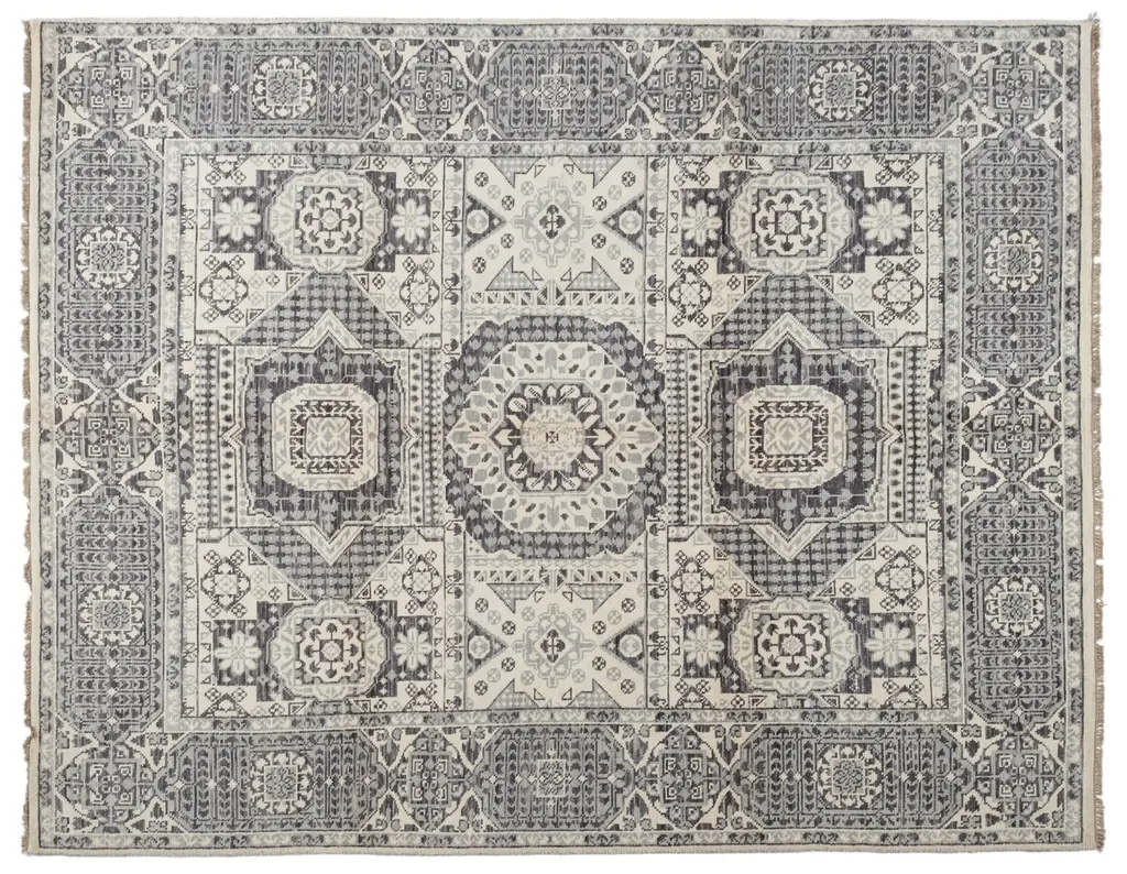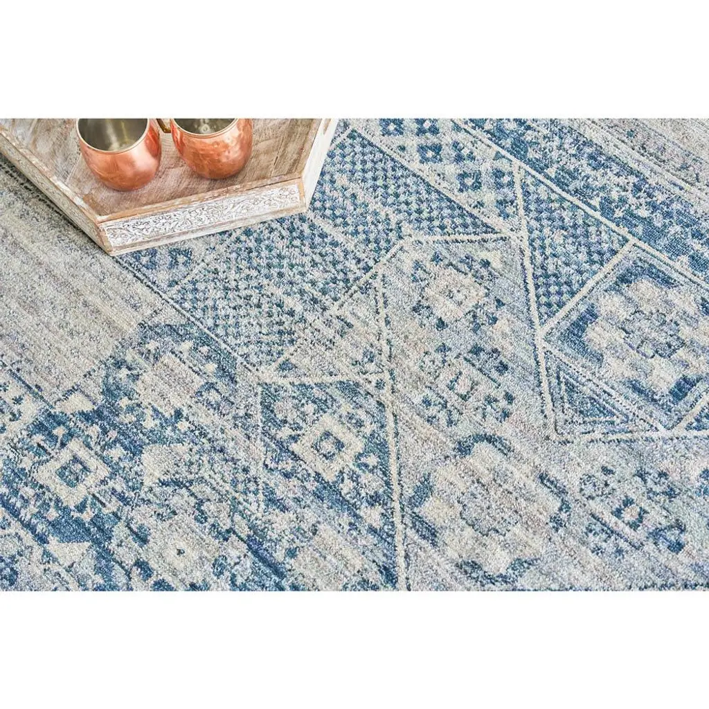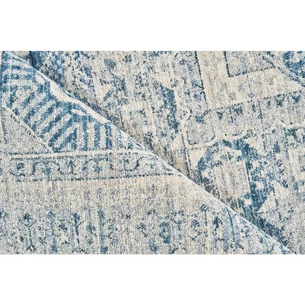 Rug swatch available! To order, choose SAMPLE in the size drop-down.Nathan Vintage Loom Blue Oushak Patterned Rug - 4'x6' is part of the Vintage Loom Collection. The Vintage Loom Collection draws inspiration from the traditional carpets at The Metropolitan Museum of Art in New York, celebrating enduring craftsmanship and rich cultural heritage. This collection features soft, subtle colors and a weathered finish, bringing a sense of history and depth to the color palette. With its muted colors and timeless appeal, it adds unique character and sophisticated charm to any space.