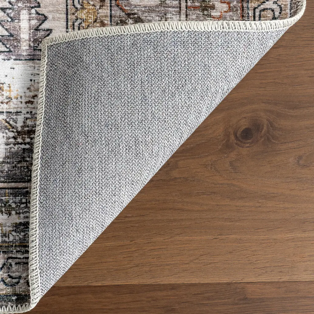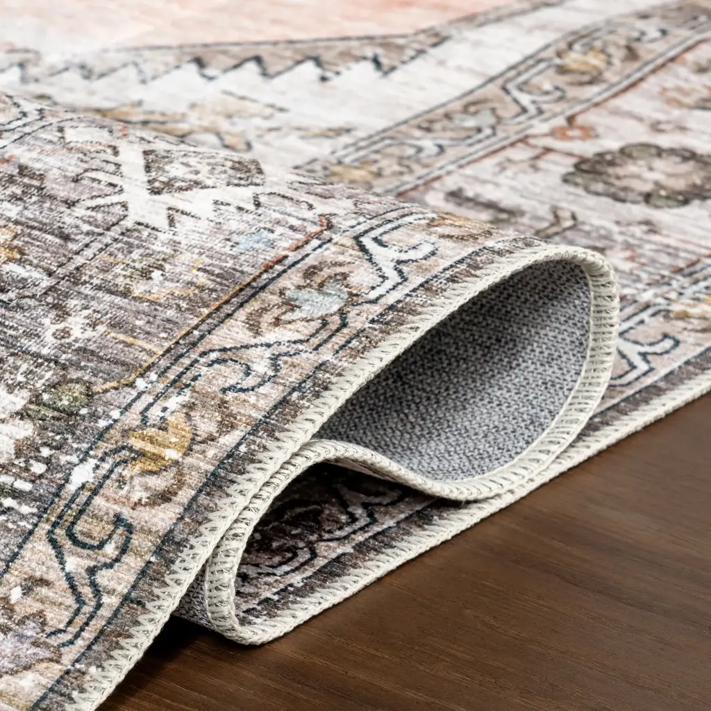 Native Iris Medallion Spill Proof Washable Rug | Peach - 2' 6" X 8'