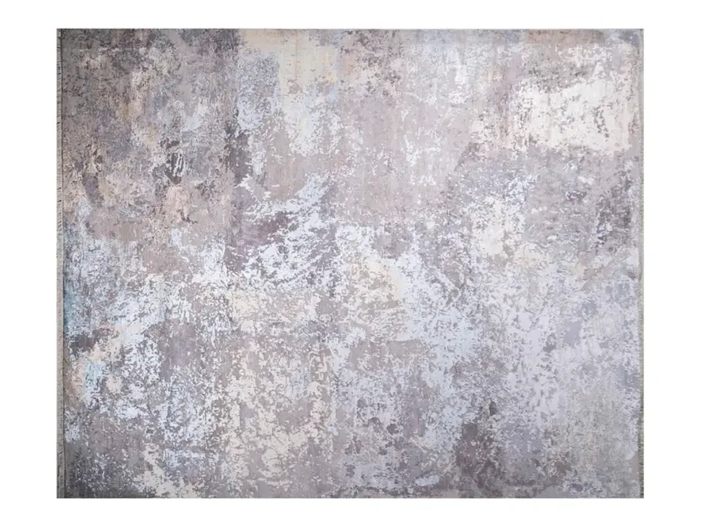 Handmade rectangular rug.Origin: Indo TibetType of production: Hand knottedComposition: wool and bamboo silkHand-cut relief design