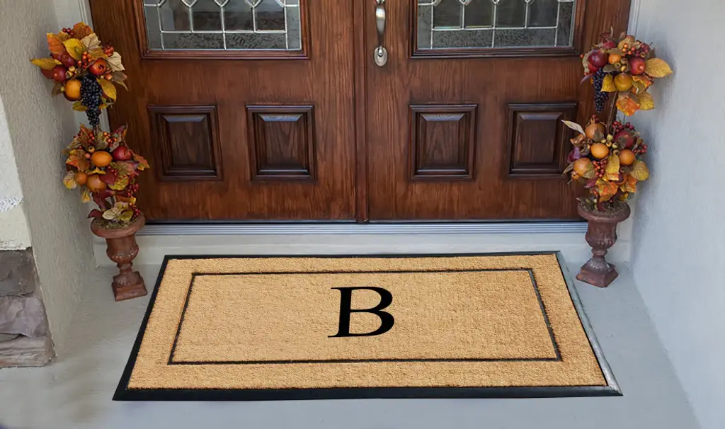 Natural Coir & Rubber Large Monogrammed Door Mat 30x60, B