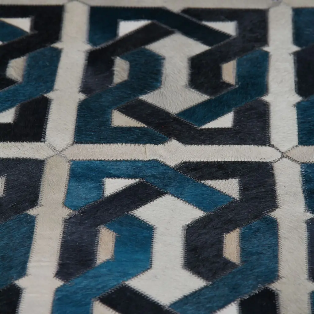 Pieces of hair-on cowhide were stitched together to create this handcrafted rug's eye-catching geometric motif. The variety of tones gives the rug a luxurious sense of depth and make it a work of art as well as a practical floor covering. A rug pad is recommended to help prevent slipping.