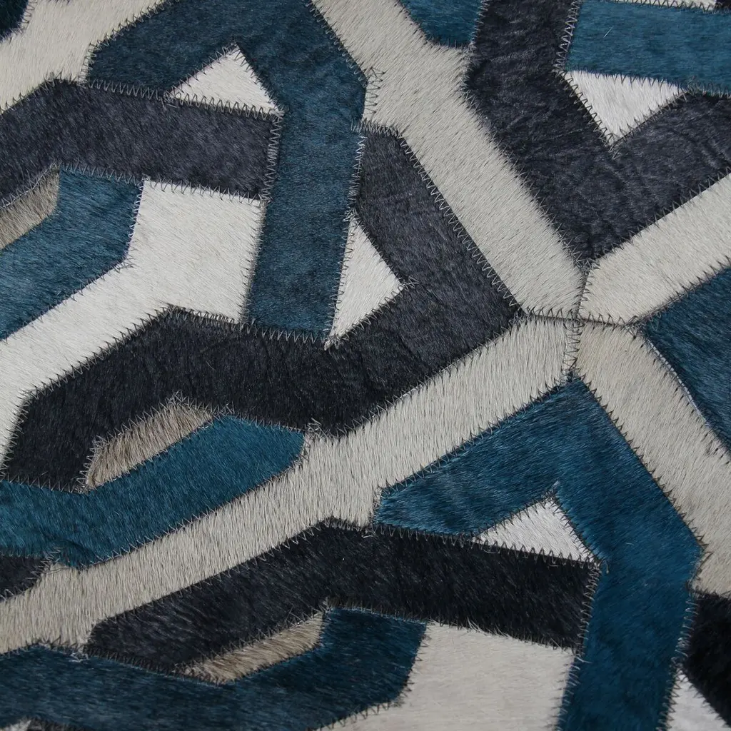 Pieces of hair-on cowhide were stitched together to create this handcrafted rug's eye-catching geometric motif. The variety of tones gives the rug a luxurious sense of depth and make it a work of art as well as a practical floor covering. A rug pad is recommended to help prevent slipping.