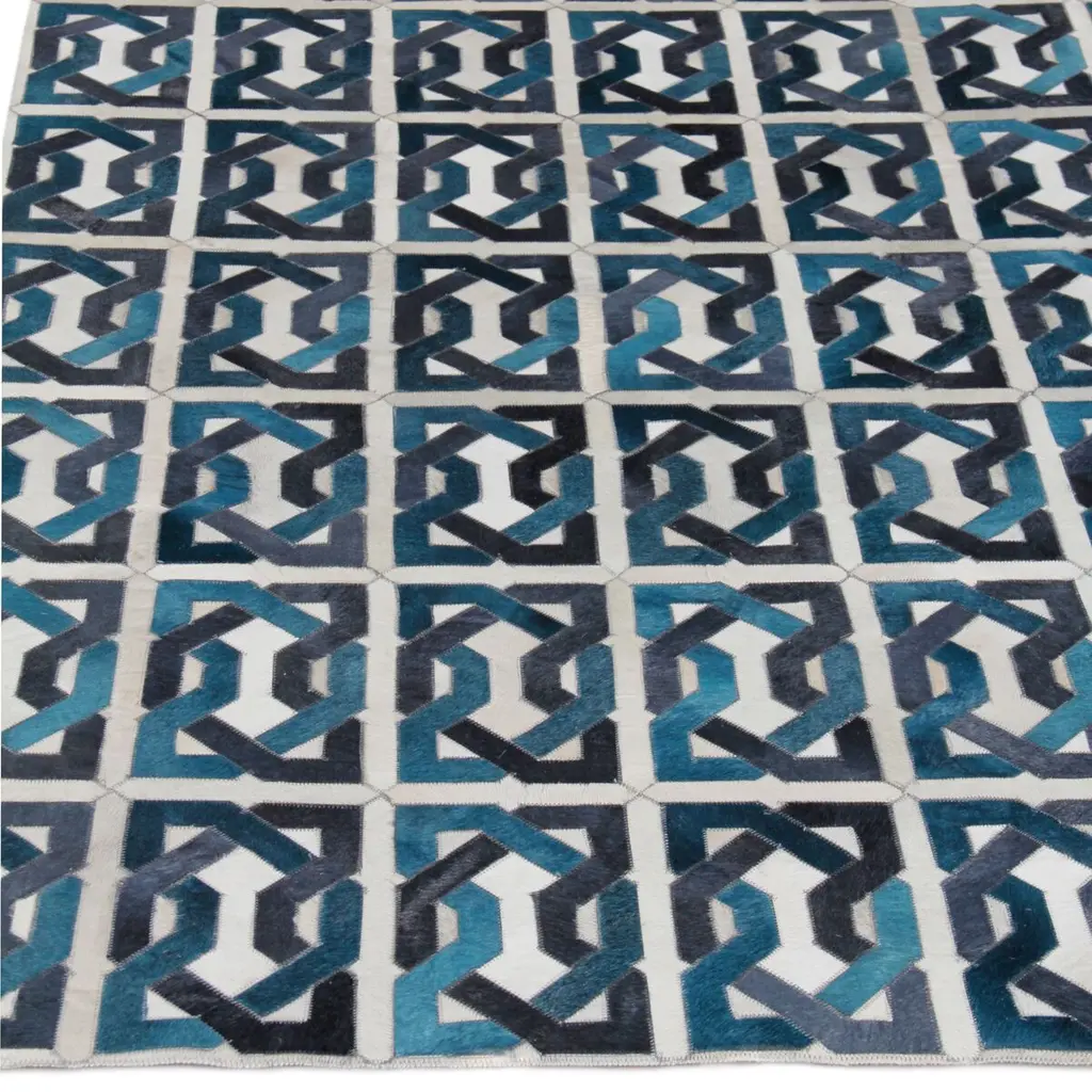 Pieces of hair-on cowhide were stitched together to create this handcrafted rug's eye-catching geometric motif. The variety of tones gives the rug a luxurious sense of depth and make it a work of art as well as a practical floor covering. A rug pad is recommended to help prevent slipping.