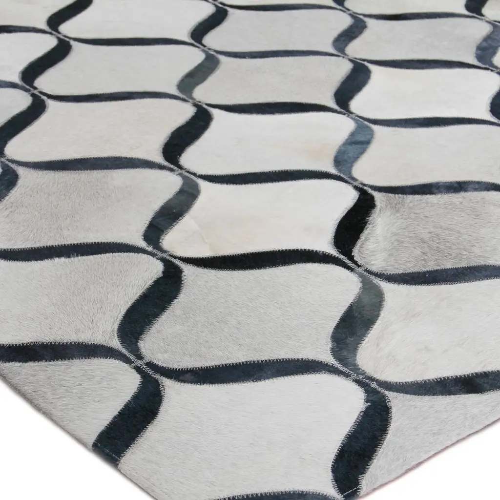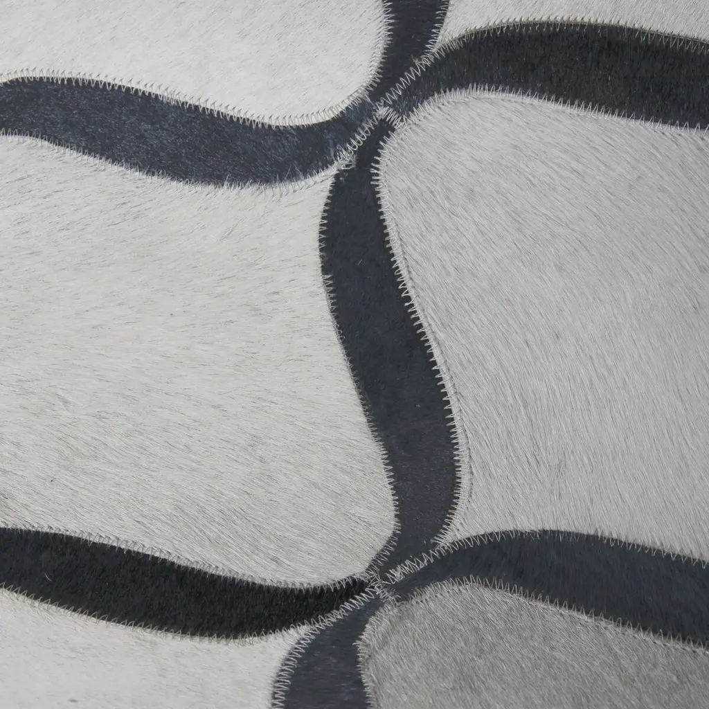 Pieces of hair-on cowhide were stitched together to create this handcrafted rug's timeless arabesque motif. The variety of tones gives the rug a luxurious sense of depth and make it as much a work of art as it is a practical floor covering. A rug pad is recommended to help prevent slipping.