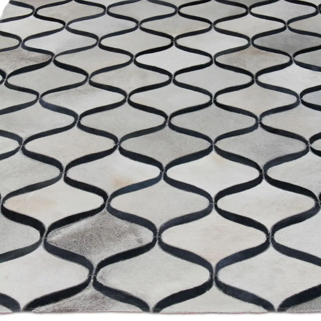 Pieces of hair-on cowhide were stitched together to create this handcrafted rug's timeless arabesque motif. The variety of tones gives the rug a luxurious sense of depth and make it as much a work of art as it is a practical floor covering. A rug pad is recommended to help prevent slipping.