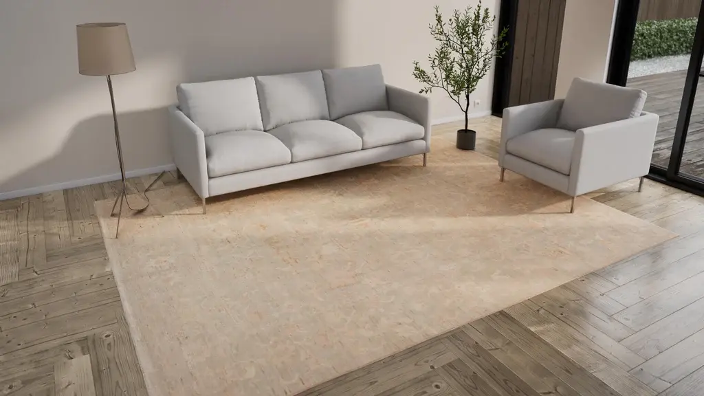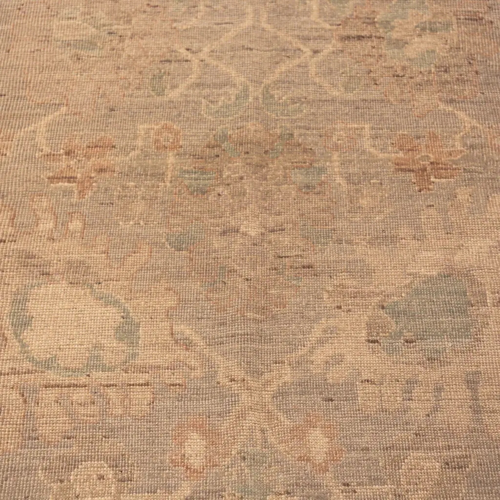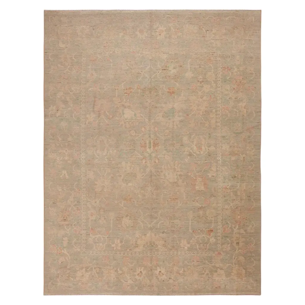 Masterful craftsmanship and strong antique quality make this Natural Modern Wool Rug - 9' x 11'9" a truly unique piece. A neutral color palette of creams and soft blues married with a traditional motif and intricate surrounding vine border offer an intriguing visual presentation for your floors. Hand-knotted from durable wool by skilled artisans, this is a dream area rug for living rooms and bedrooms in need of an elevated and sustainable centerpiece. Bring home timeless warmth with the Zameen Collection, inspired by the grounding foundations of Earth's natural colors and pure materials.