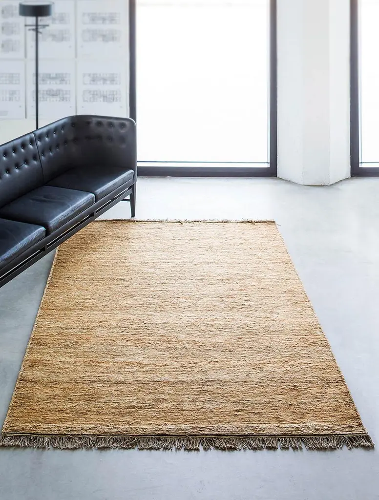 Natural Sumace carpet with fringes by Massimo CopenhagenHandknottedMaterials: 100% HempDimensions: W 250 x H 300 cmAvailable colors: Natural, Natural with Fringes, Black, Black with Fringes, and Navy.Other dimensions are available: 170x240 cm, 200x300, 250x300, and special sizes.Strong, sustainable and timelessly stylish. Sumace rugs are handknotted in 100% Hemp, which gives a sophisticated rustic expression and appeals to the basics in life. Hemp has a high abrasion resistance and its softness increases over time. It is sustainable, natural and biodegradable material that has a strong durability.Available with and without fringes.Underlay carpet is included.Handknotted – 100% HempOur storyWe believe that any interior can be elevated with uplifting colors and pleasant textures. At massimo we do it one rug at a time and with the greatest of attention to design, quality, sustainability – and you.Because all great results start with dialogue, quality and empathy. For more than 20 years massimo has focused on creating handmade rugs for both private homes, public spaces as well as developers.We approach every inquiry with the same attention and curiosity, whether the best solution is one of our signature quality rugs always on stock or a one-of-a kind bespoke rug designed and made especially for the occasion.We cannot and we will not deny our Scandinavian origin. We have a passion for subtle, natural color schemes and long-lasting functional design – but are not afraid to challenge and tempt with a bolder, more colorful alternative.After all, a rug is the soul of a room – and some souls are simply more hot-spirited.