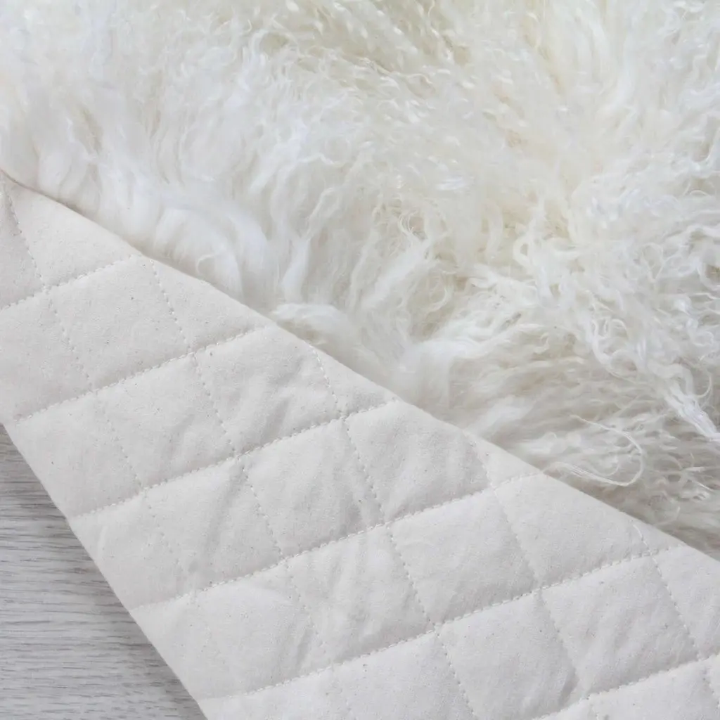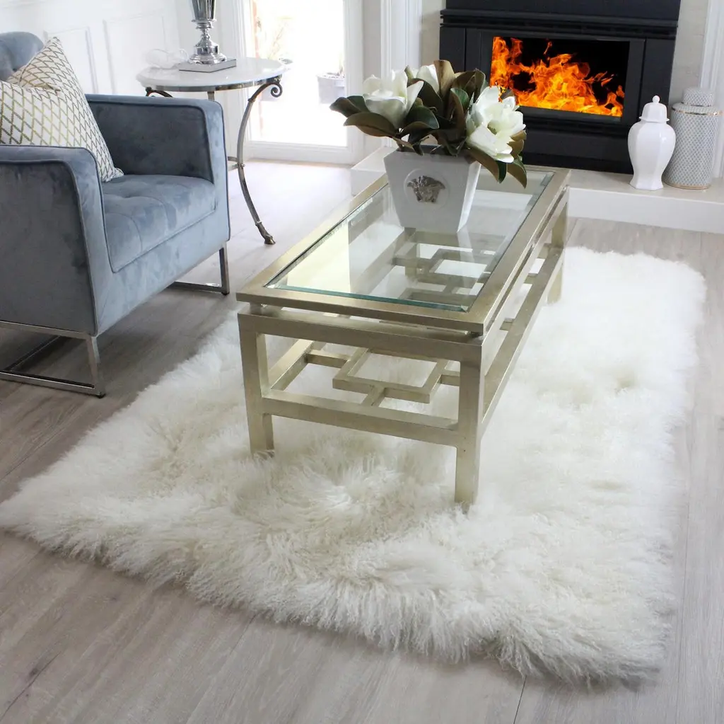 Style your interior floors with the beauty of a natural sheepskin rug that looks and feels luxurious while adding the natural charm, warmth, and character that sheepskin has to offer. Handcrafted from genuine Tibetan lambskins also known as Mongolian Sheepskins, this natural white sheepskin rug has fine wool with a silky feel and fluffy appearance formed by its distinctive curly and crimped like texture. Its long and fluffy wool falls effortlessly on the floor while its elegance and supreme softness projects ultimate comfort and luxury. After a long day’s work, take off your shoes and relax in the luxurious comfort and softness of this fur rug with its quilted cotton reverse backing designed for additional foot comfort. From countryside living and luxury apartments to contemporary and Classic spaces, Mongolian sheepskin rugs will look refined and stylish in any décor space.At eluxury, we are makers of our sheepskin rugs. We offer a custom make and bespoke service with our large colour selection of Mongolian sheepskins available in over twenty colours with a custom dye service available for larger rug sizes.Featurtes:Made from genuine Mongolian sheepskinsColor: natural whiteWool length: up to 4" (10cm)Pile height approximate 1" (2-3cm)Lined with a quilted cotton backingMade In Australia.Product care:Mongolian sheepskin is naturally a very light weight sheepskin therefore a non-slip grip is highly recommended for this product.Vacuum on low setting and without brush. Shake outside often. This will refluff the woollen fibresSpot clean only with clean lukewarm water and gentle wool wash. Do not submerge into water or wash. Do not apply chemical agents to the wool. Do not brush. Dry clean only. Do not steam Clean. Non-slip grip highly recommendedKeep away from direct sunlightColor swatch:Sheepskin color swatches are available upon request. A delivery fee may apply.Pantone color dye service available for larger size orders.