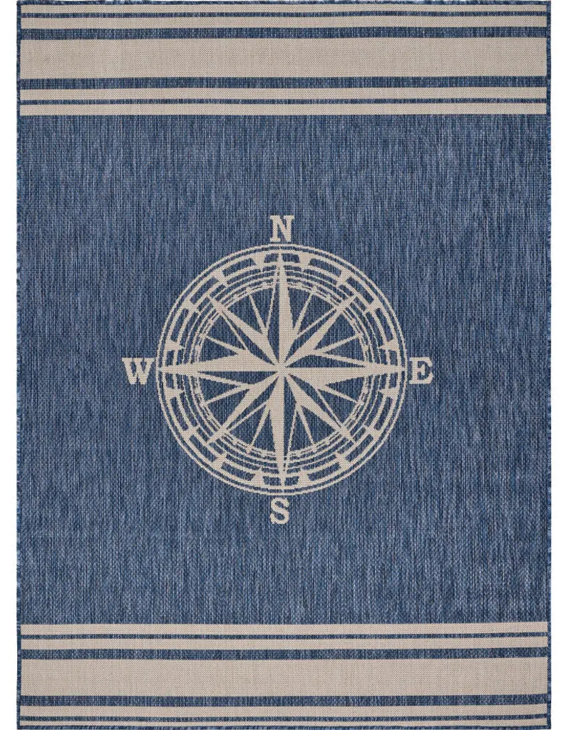 This eye-catching nautical themed rug is a must have for your stylish and functional indoor outdoor space. This rug is an easy addition to a sun room, patio space, or dining area. The machine made construction allows this rug to be the perfect fit for high traffic area and sandy patio. This piece is easily shaken out and cleaned. Don''t overlook the endless opportunities this indoor outdoor collection has to offer for a variety of different spaces in your home.