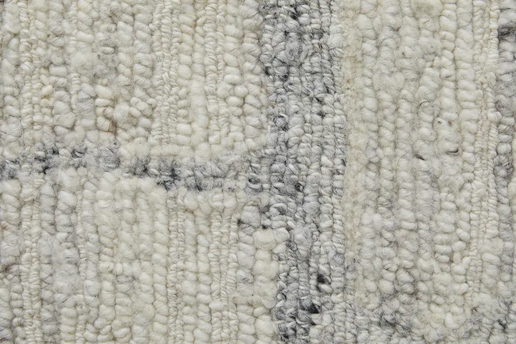 Collection: Navaro Colors: Ivory, Gray, Blue Construction: Hand Woven Material: Face: Wool, Viscose Pile: Low Pile Pile Height: 0.47" Styles: Contemporary,Scandinavian,Transitional,Bohemian Backing: N/A Made In: India Thickness: 0.47" Price Range: $$$$$ (Premium)