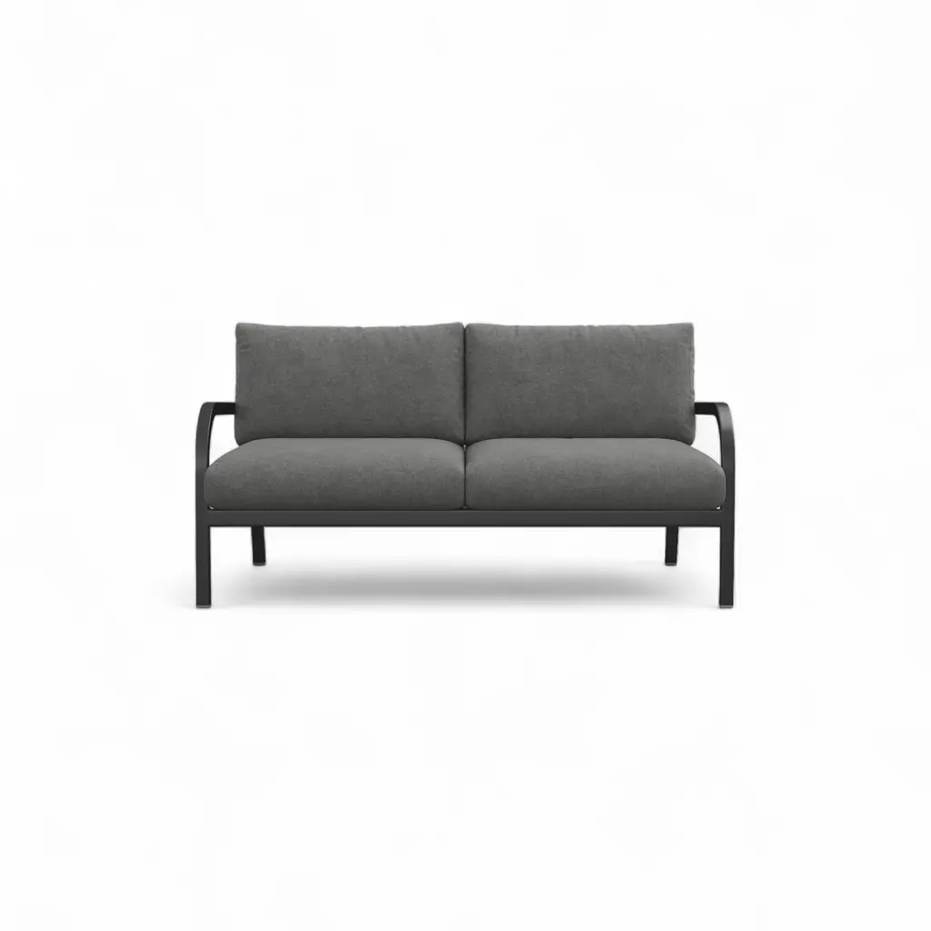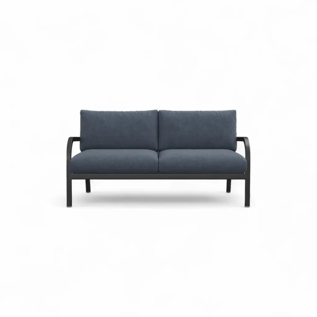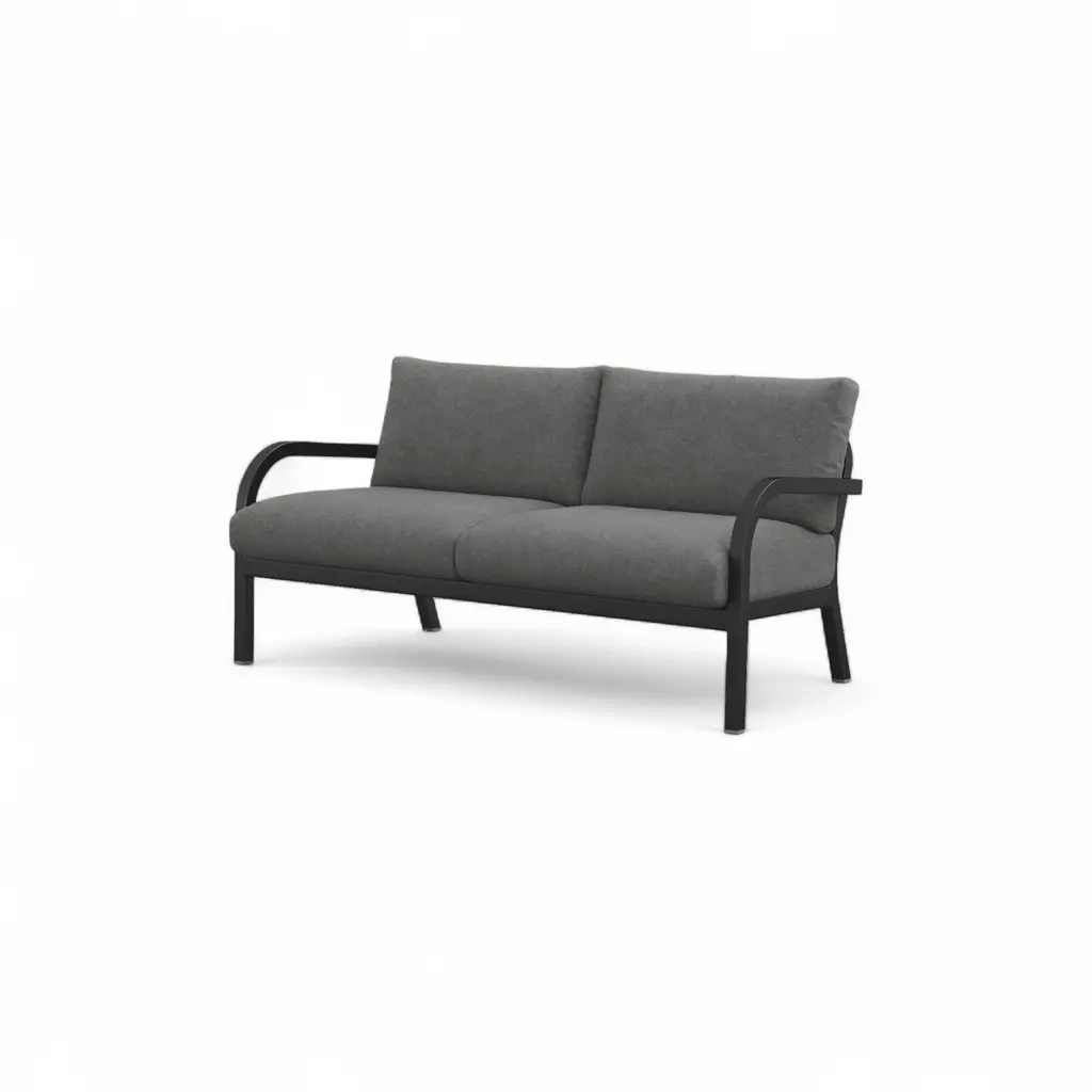 Can the black frame live outdoors all year? Yes—its matte powder coat shrugs off UV, salt spray, and winter frost. Jasper Morrison’s 2025 redo scales Emeco’s wartime sofa to a nimble two-seater without losing the Hanover-made, hand-welded aluminum backbone. The deep charcoal shell is oven-baked for a hard, even skin, then paired with snap-on cushions in leather, indoor cloth, or Sunbrella Heritage for decks and docks. Hidden marine-grade fasteners pop loose in seconds, so you can stash the pads before a storm. Slide the sofa against a balcony wall, line two around a firepit, or float one in a lobby corner; a quick hose-down keeps the frame spotless, and Emeco’s lifetime warranty covers every setting from living room to patio.