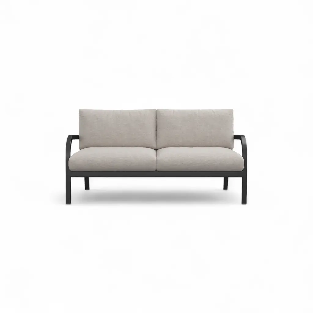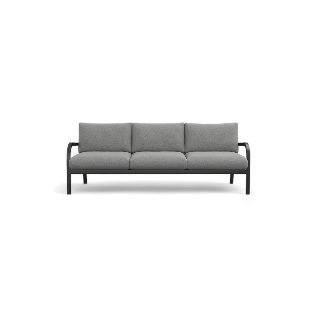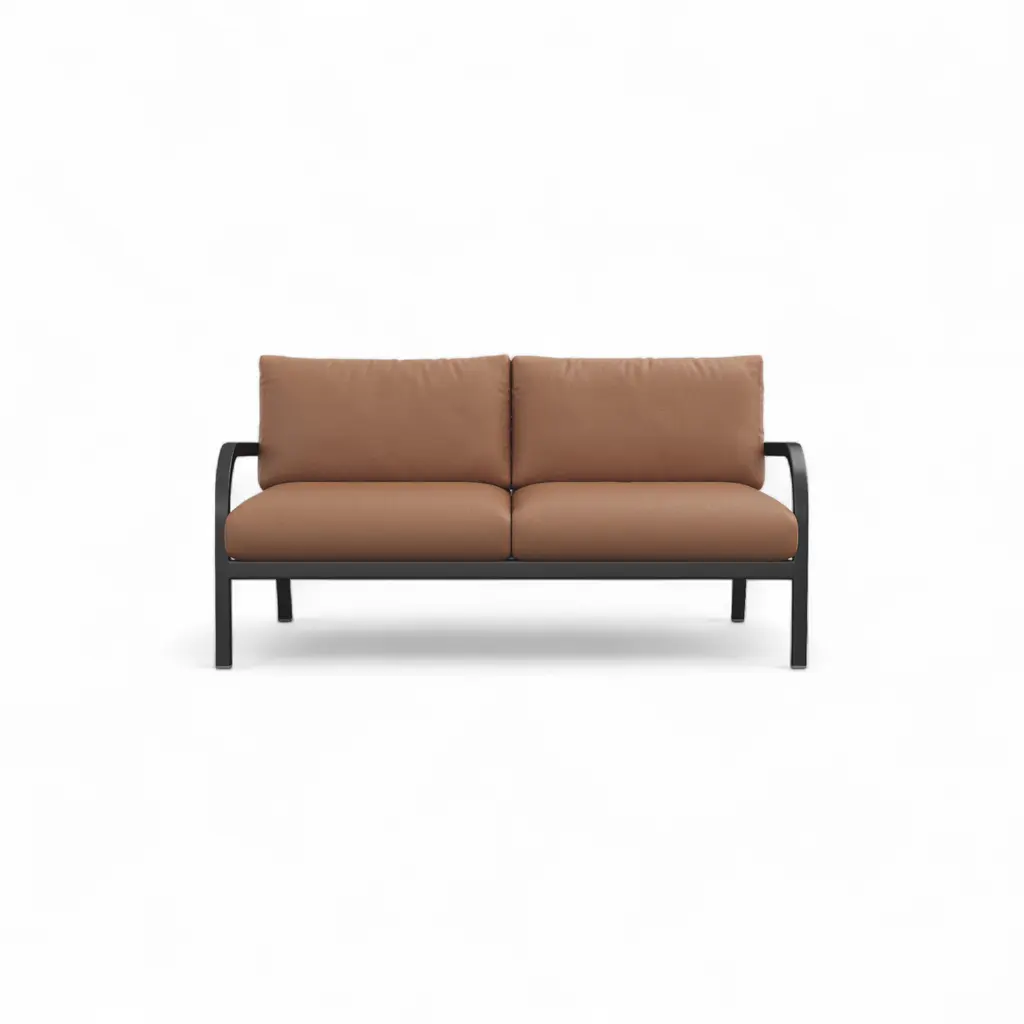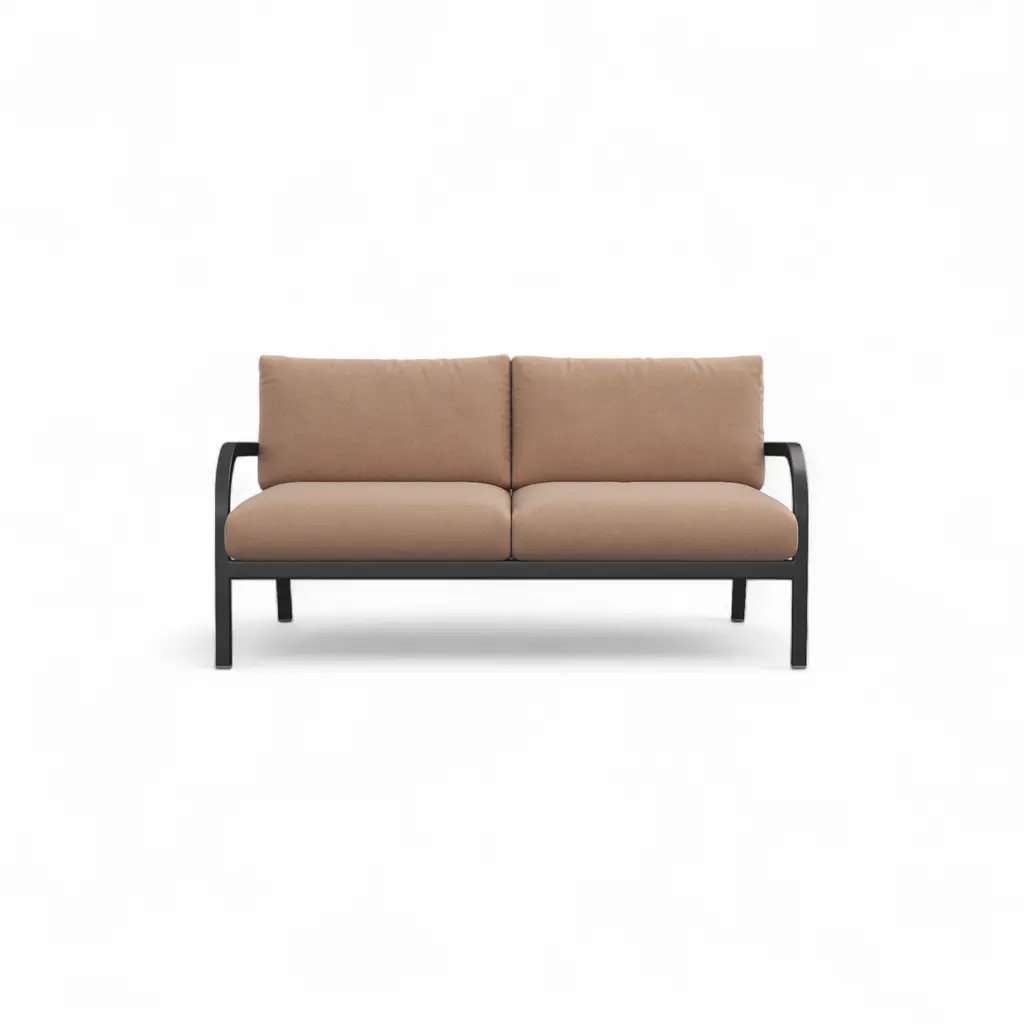 Can the black frame live outdoors all year? Yes—its matte powder coat shrugs off UV, salt spray, and winter frost. Jasper Morrison’s 2025 redo scales Emeco’s wartime sofa to a nimble two-seater without losing the Hanover-made, hand-welded aluminum backbone. The deep charcoal shell is oven-baked for a hard, even skin, then paired with snap-on cushions in leather, indoor cloth, or Sunbrella Heritage for decks and docks. Hidden marine-grade fasteners pop loose in seconds, so you can stash the pads before a storm. Slide the sofa against a balcony wall, line two around a firepit, or float one in a lobby corner; a quick hose-down keeps the frame spotless, and Emeco’s lifetime warranty covers every setting from living room to patio.