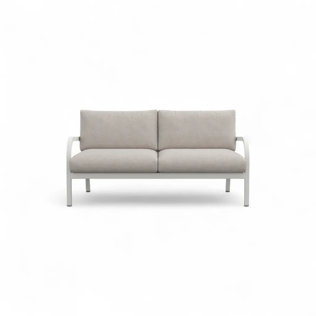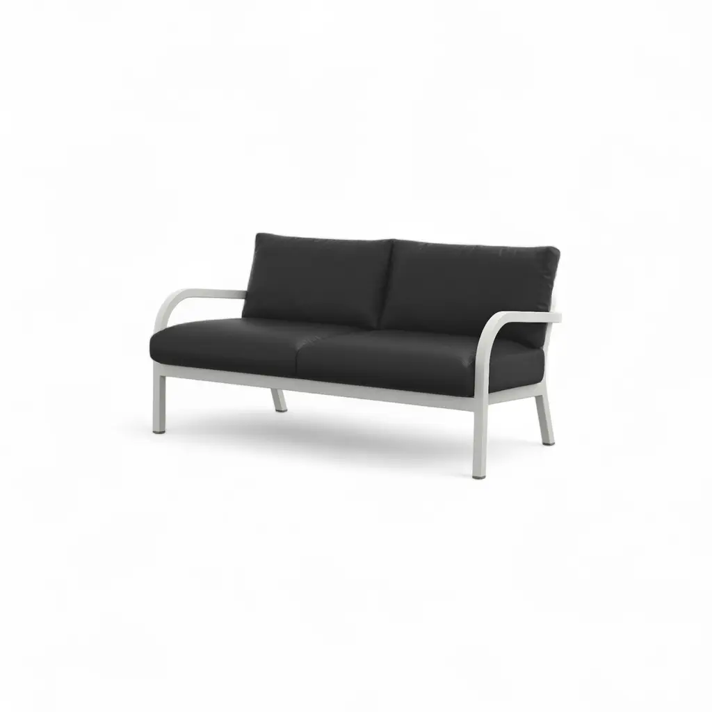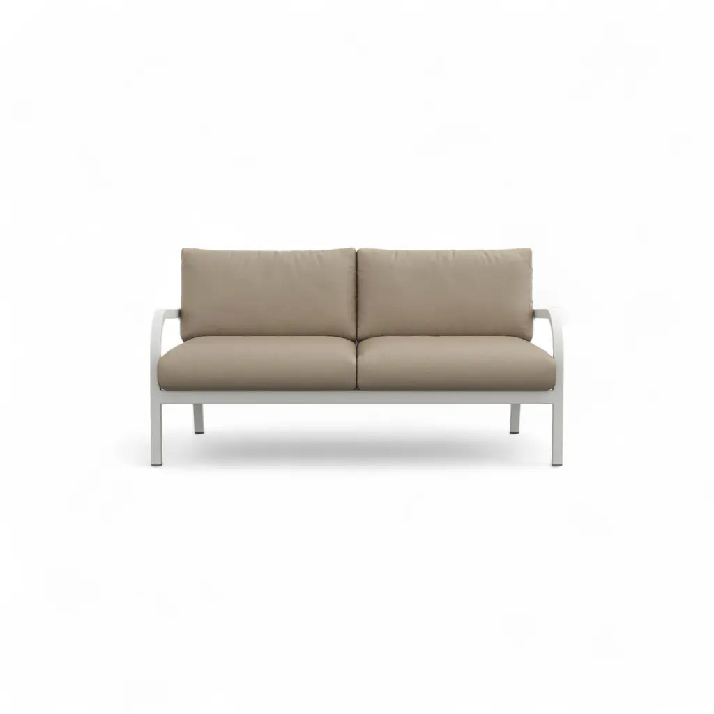 Does the pale finish chip easily? No—the baked-on powder coat bonds to the aluminum and shrugs off bumps, toys, and sunscreen. Hand-crafted in Pennsylvania via Emeco’s 77-step process, the recycled-aluminum frame is welded, heat-treated, and finished in a calm neutral that flatters any palette. Cushions zip into place in leather, fabric, or Sunbrella Heritage; swap covers with an Allen key when seasons—or color moods—change. Breathable inserts dry quickly after summer showers, and marine-grade snaps keep pads secure on breezy rooftops. Use the sofa to brighten a study, anchor a garden lounge, or welcome guests in an entry vestibule; a mild-soap wipe keeps the frame spotless, the cushions zip off for laundering, and the piece carries Emeco’s lifetime promise on both sides of the threshold.