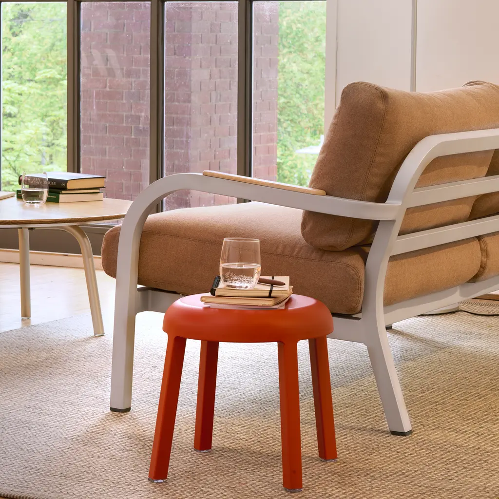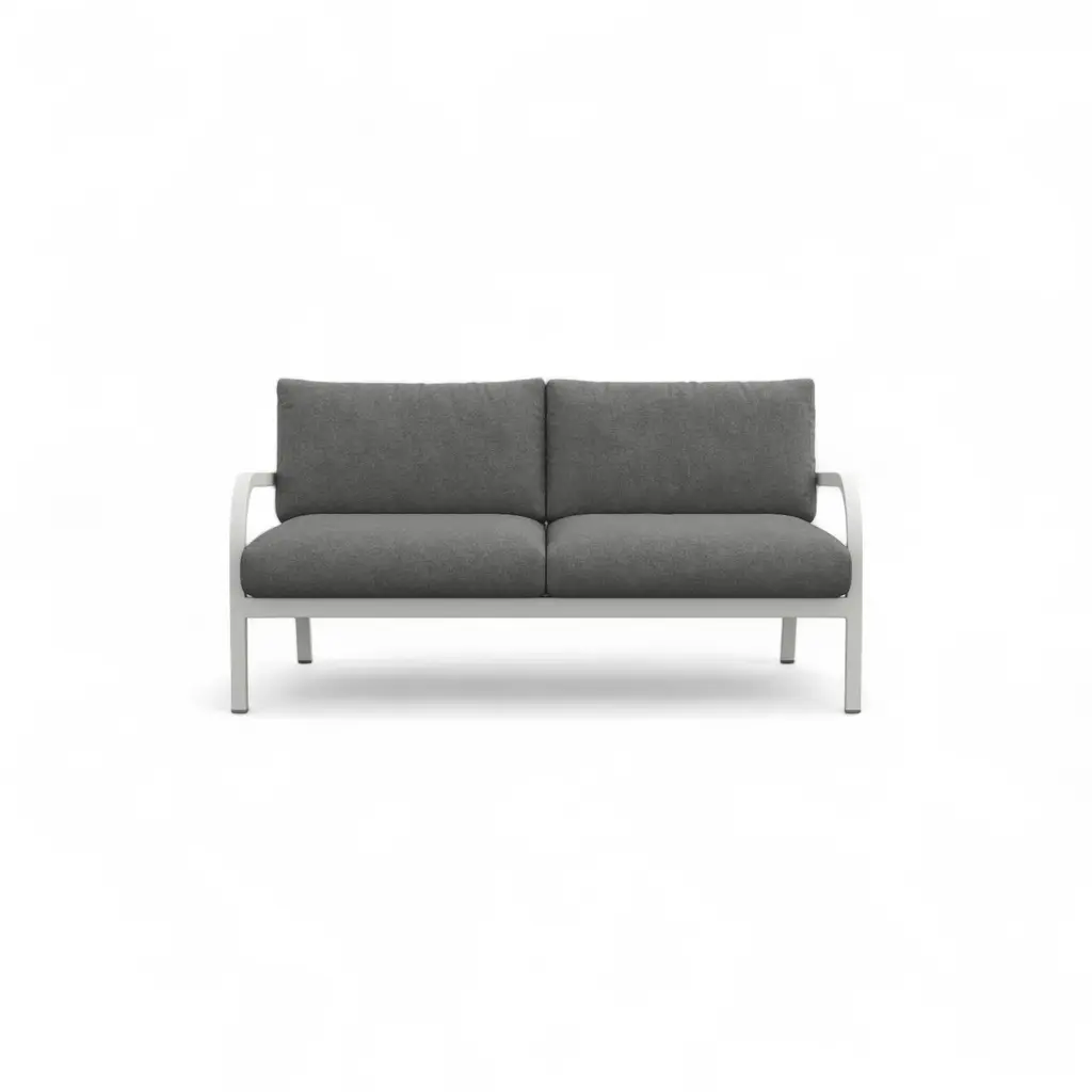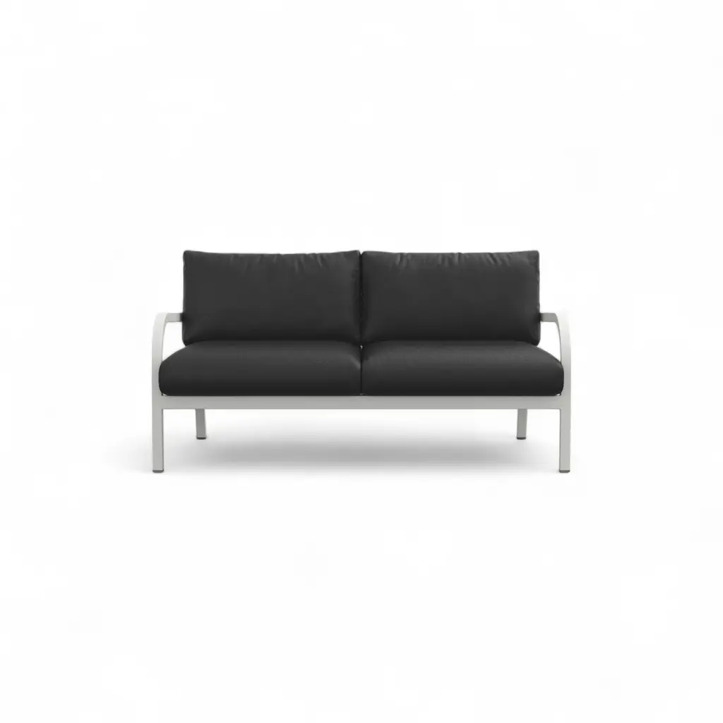 Does the pale finish chip easily? No—the baked-on powder coat bonds to the aluminum and shrugs off bumps, toys, and sunscreen. Hand-crafted in Pennsylvania via Emeco’s 77-step process, the recycled-aluminum frame is welded, heat-treated, and finished in a calm neutral that flatters any palette. Cushions zip into place in leather, fabric, or Sunbrella Heritage; swap covers with an Allen key when seasons—or color moods—change. Breathable inserts dry quickly after summer showers, and marine-grade snaps keep pads secure on breezy rooftops. Use the sofa to brighten a study, anchor a garden lounge, or welcome guests in an entry vestibule; a mild-soap wipe keeps the frame spotless, the cushions zip off for laundering, and the piece carries Emeco’s lifetime promise on both sides of the threshold.