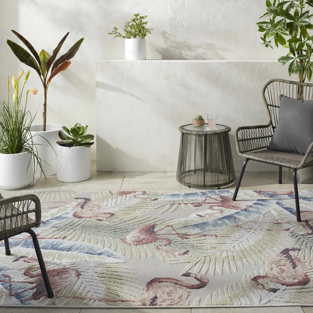 Collection: Nayan Colors: Cream, Olive, Blue, Rust, LightSlate, DarkBrown Construction: Machine Woven Material: 100% Polypropylene Pile: Low Pile Pile Height: 0.2" Styles: Coastal Outdoor Safe: Yes Made In: Turkey Thickness: 0.28" Price Range: $$$$$ (Most Affordable)