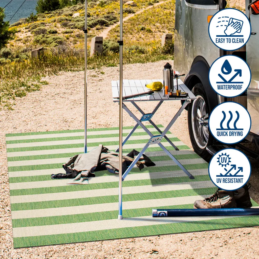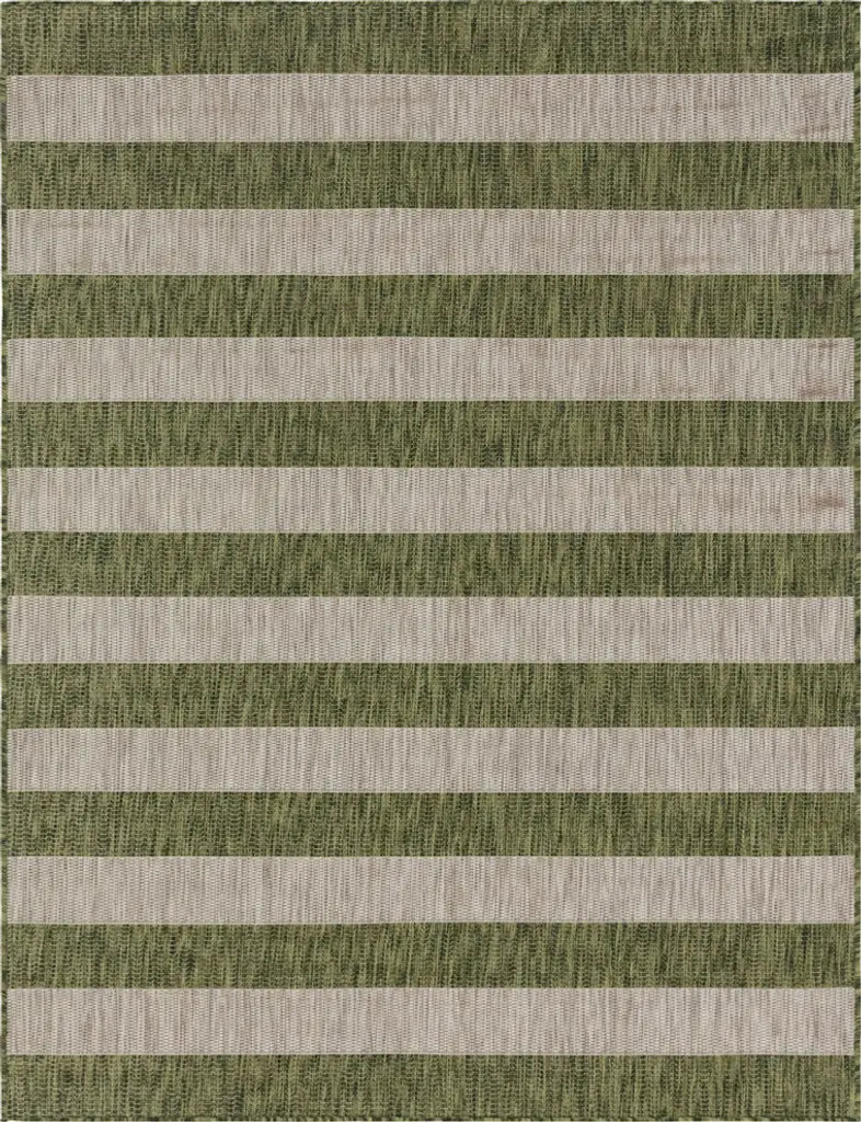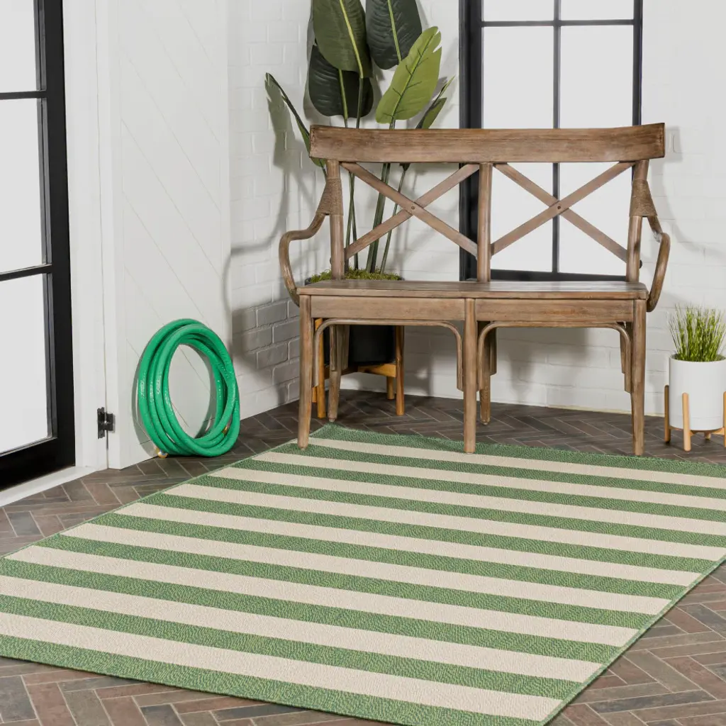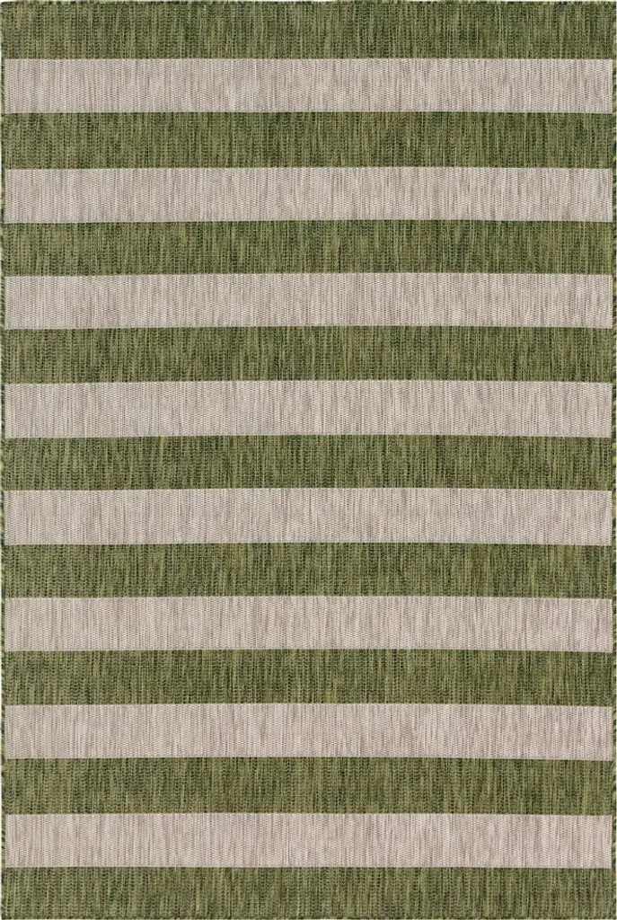 Negril Two-Tone Wide Stripe Indoor/outdoor Area Rug, Green/cream, 3X5