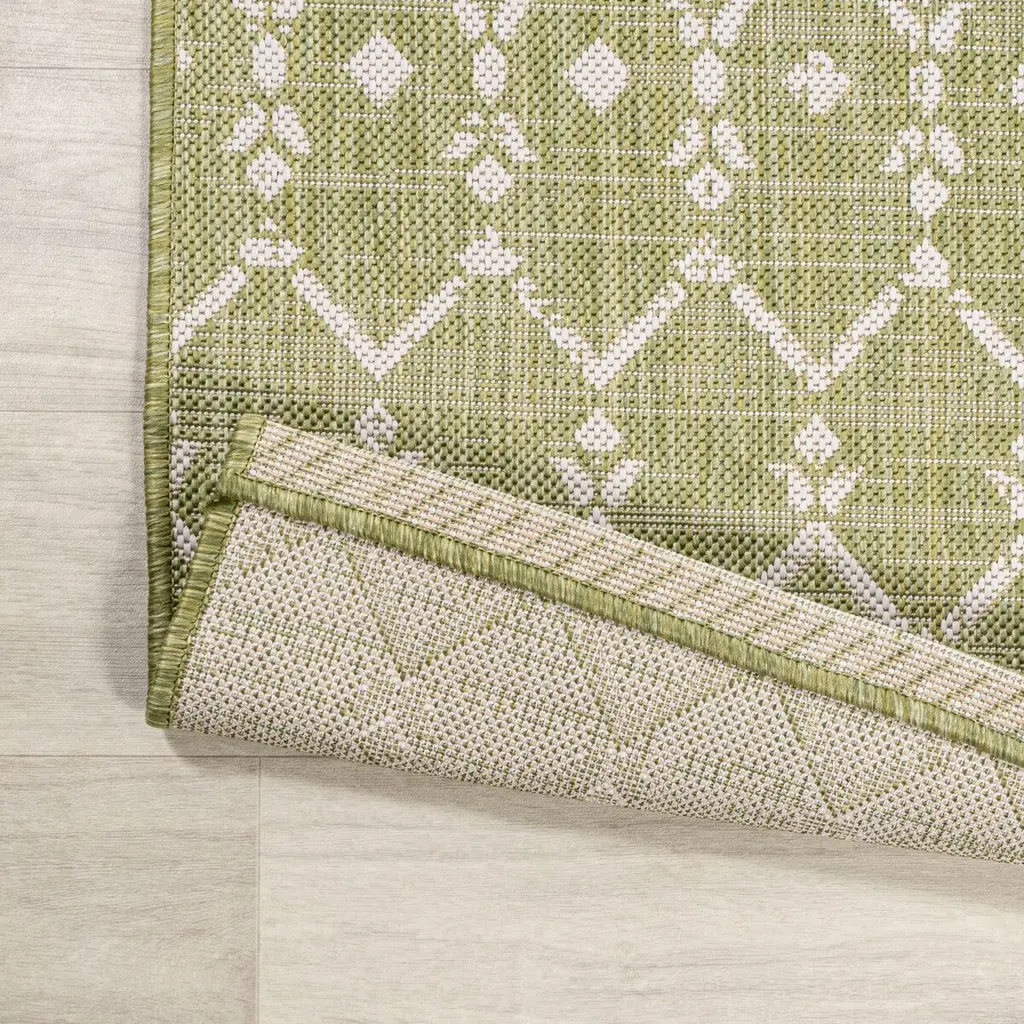 Vintage Berber rugs inspired this rug's geometric motifs. Made of durable, low-maintenance polypropylene, the rug is suitable for outdoor as well as indoor use. A rug pad is recommended to help prevent slipping.