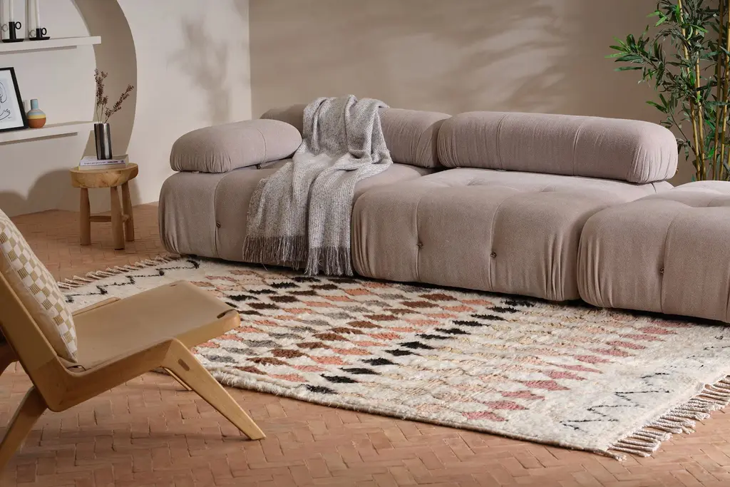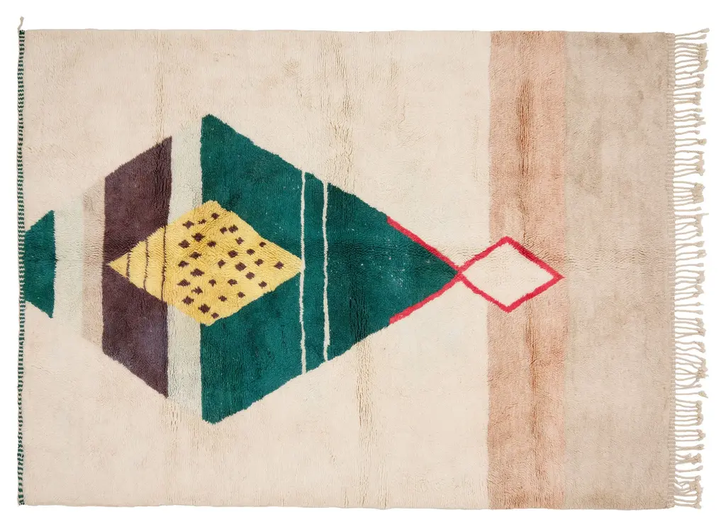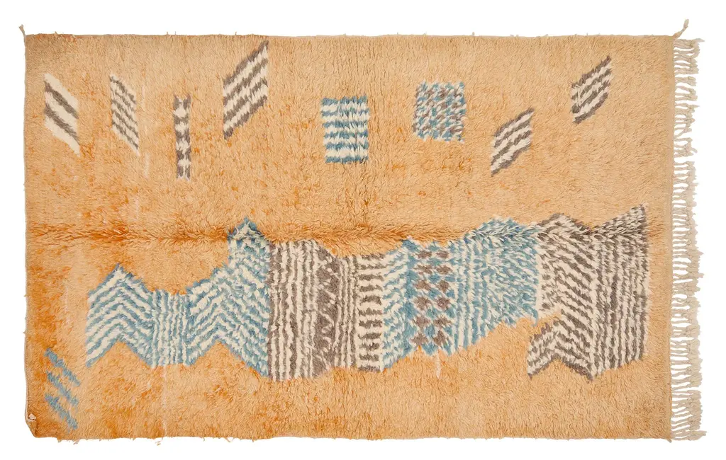 Our Moroccan pieces are each one-of-a-kind. Much of our collection was woven between 30 and 100 years ago, and curated by us. Other rugs in our collection are fresh off the loom and made with traditional techniques. Moroccan rugs don’t come with a key. As with any painting or poem, their motifs have many subjective interpretations. Originally made for personal use, these rugs took months to weave, documenting a shifting tide of events and emotions in the weaver’s life.