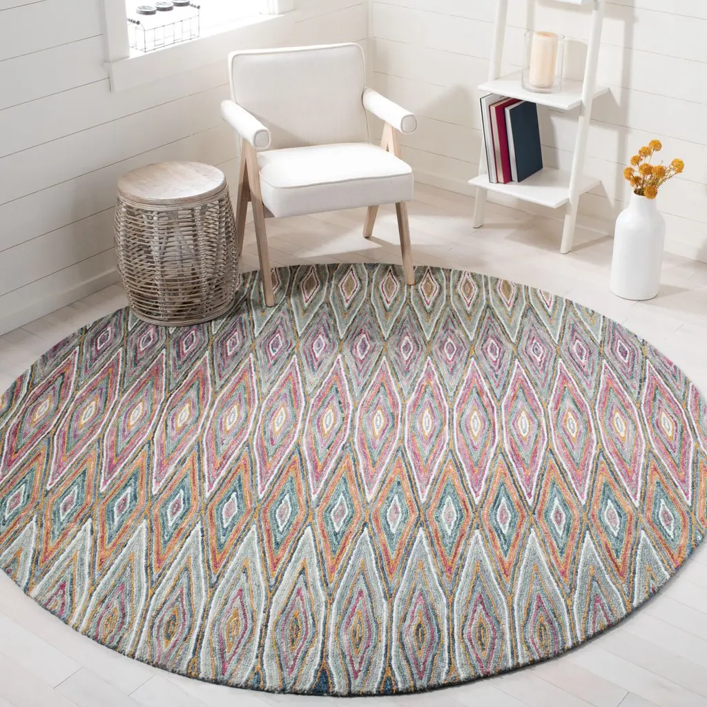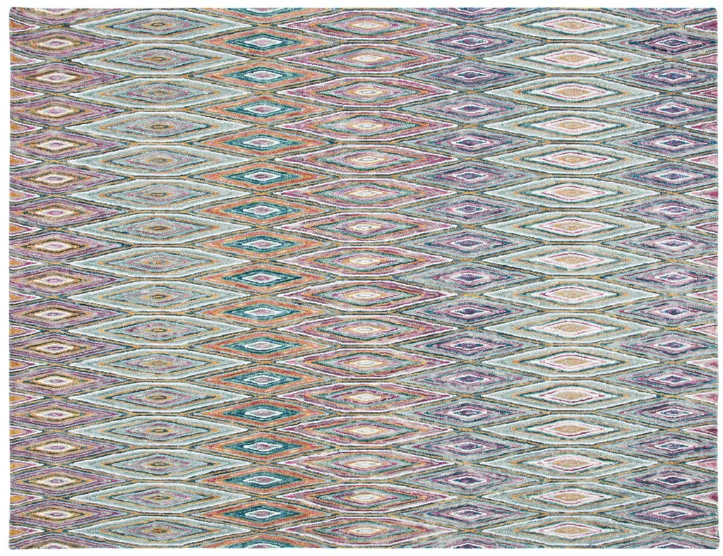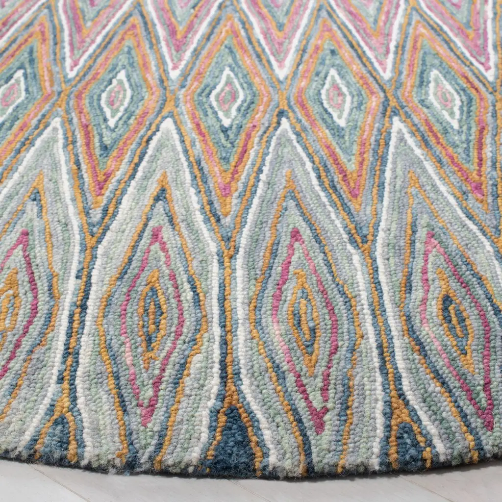 Discover the enchanting allure of our Bohemian-style area rug, meticulously crafted by skilled artisans through the hand-tufted technique, and savor a touch of India?s rich textile heritage in your living space. This small rectangular rug, sized at a versatile 4 feet by 6 feet with a comfortable pile height of 3/8 inches, is a perfect accent for any room seeking a dash of vibrancy and pattern. Made with the finest wool, this rug promises durability along with a soft texture to grace your floors. The compelling pattern, as displayed in the image, showcases a harmonious blend of blue and pink hues, alongside other complementary colors that create a dynamic and spirited visual experience. The exotic pattern promotes a sense of movement and flow, skillfully embodying the spirited essence of Bohemian decor. Each rug, birthed from the looms of India?an epicenter of textile artistry?is not just a floor covering but a piece of tradition, woven with stories of the past and present. Whether it's anchoring your living room, bringing warmth to your bedroom, or adding character to your study, this woolen treasure adapts to your personal style while offering a timeless statement piece for your home. Embrace this hand-tufted marvel as a testament to both craftsmanship and contemporary design, and let it transform your space into an eclectic haven of color, comfort, and cultural charm.