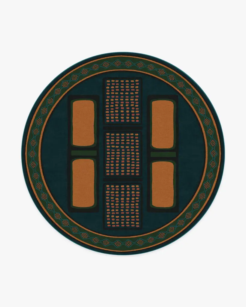 Immerse yourself in the allure of our Architectural Digest Nerissa Teal & Gold Rug, an artistic representation of a moonlit night at the edge of a lush, fragrant forest, designed by David Quarles IV. Inspired by the beauty of nature and the eclectic essence of Quarles' home, this design packs a bold punch with intricate details. Teal and gold hues are complemented by jewel greens and blues, and coral accents that pay homage to Quarles' larger-than-life personality. Water-resistant, stain-resistant, and machine-washable. Rug colors may vary slightly according to your device and the lighting in your space.